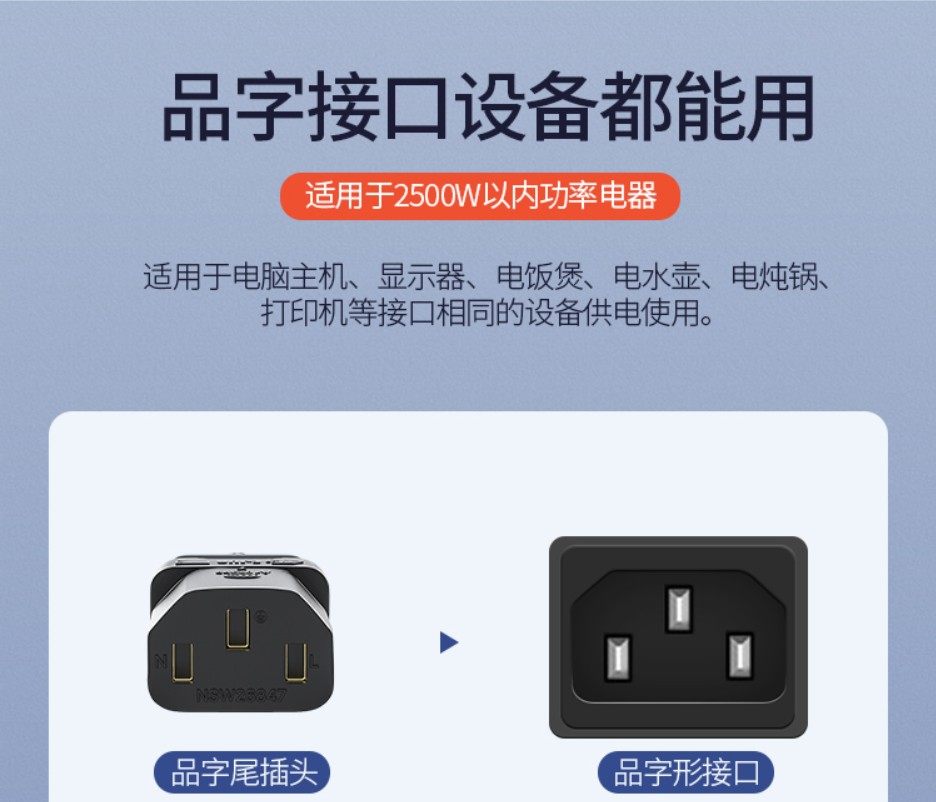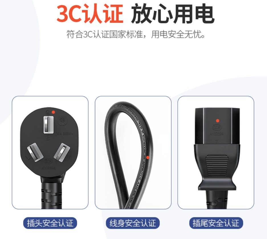 Pure Copper 1.9m Splitter Power Cord for Desktop Computer with Three-Prong Plug, National Standard Computer 3m