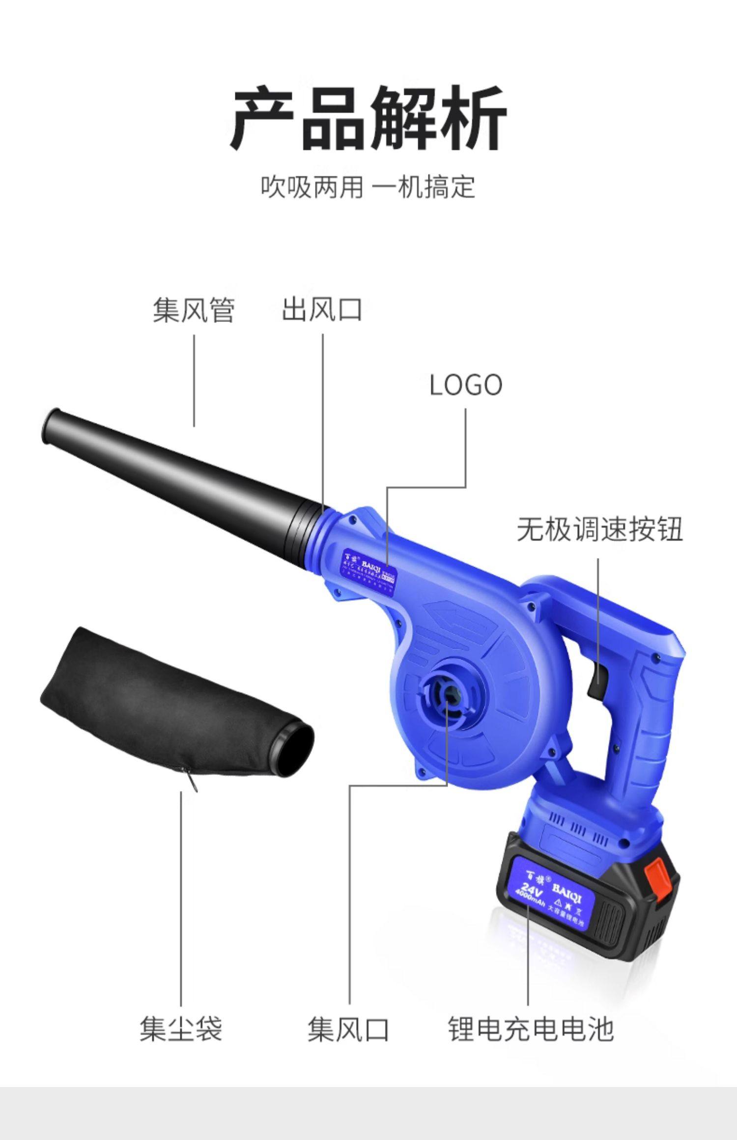 Rechargeable Blower Lithium Battery Hair Dryer Rechargeable Dust Blower High Power Industrial High Power Electric Dust Collector