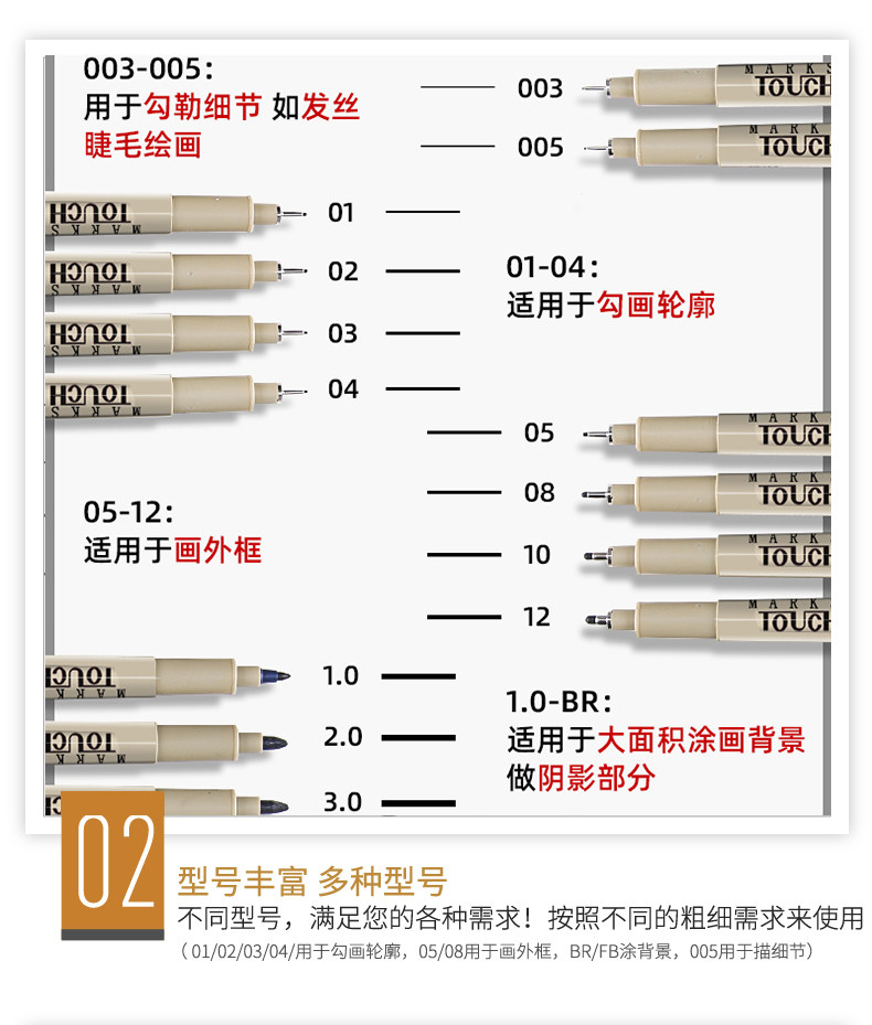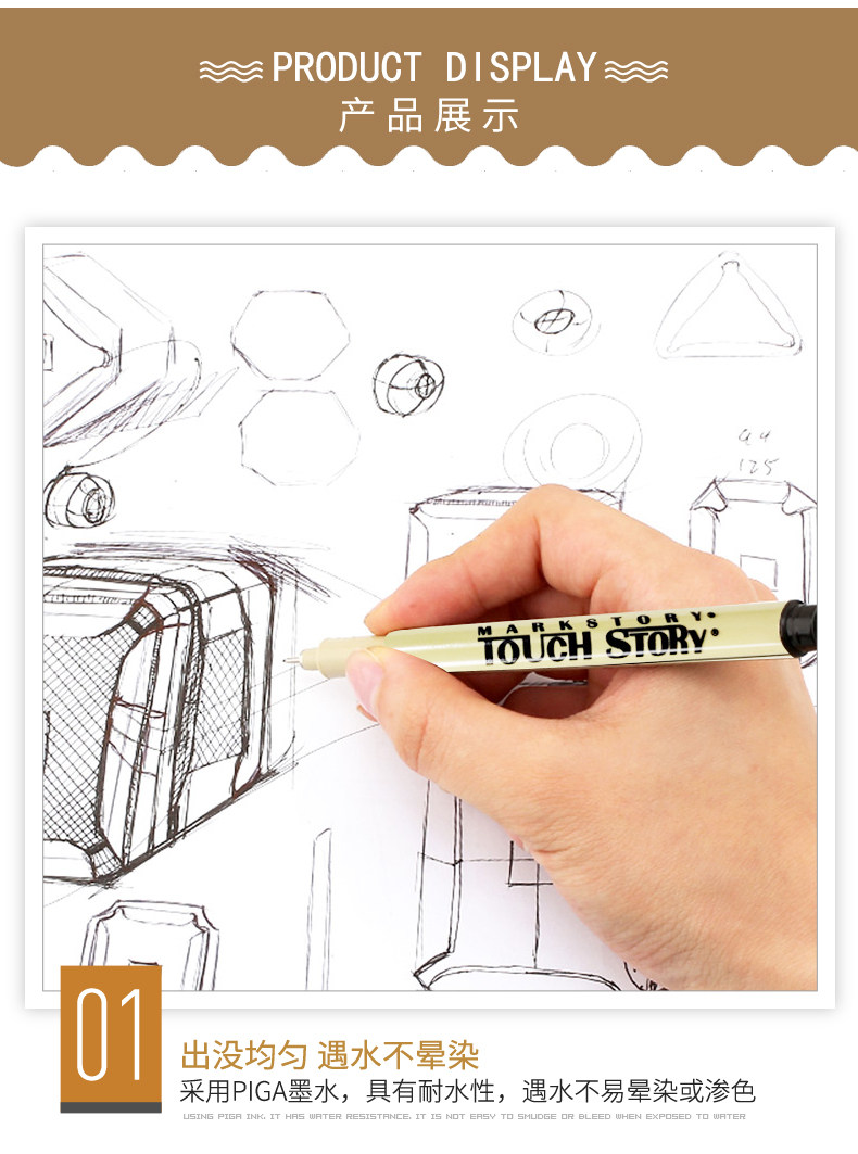 Touch Needle Pen Hand-Drawn Waterproof Outlining Pen Comic Sketching Art Drawing Gel Pen Imported Same Model