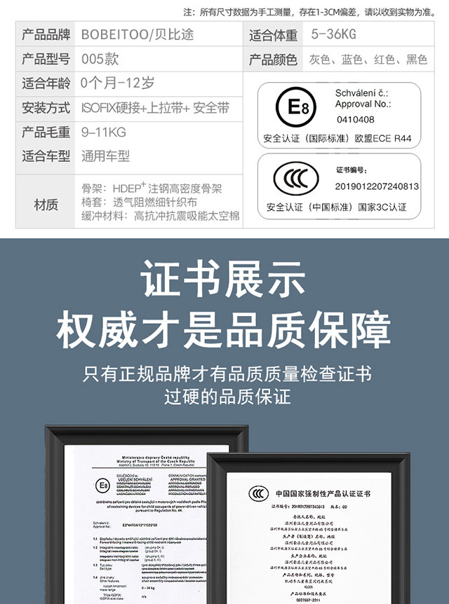 | Certification Standards | 3C Certification,i-Size,National Standard,European Standard Ece |