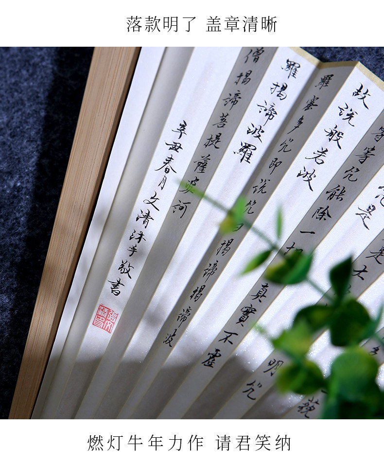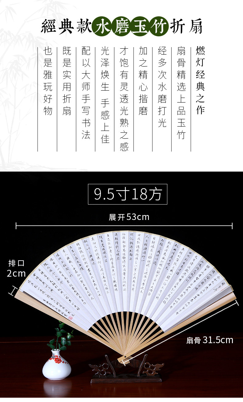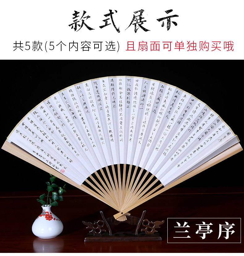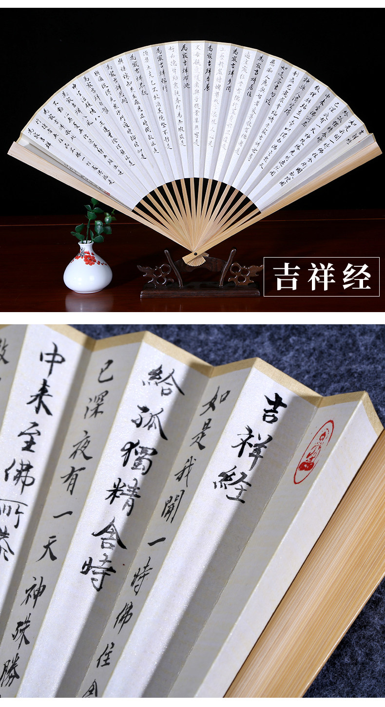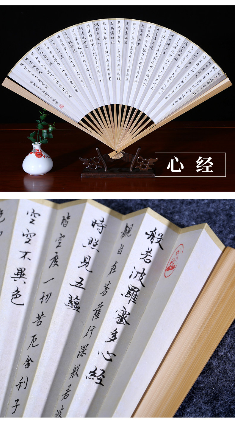 Handwritten Heart Sutra Fan, Lanting Preface Calligraphy Work, Fan Art, Jade Bamboo Folding Fan, 9.5inch Su Gong Wenwan Fan
