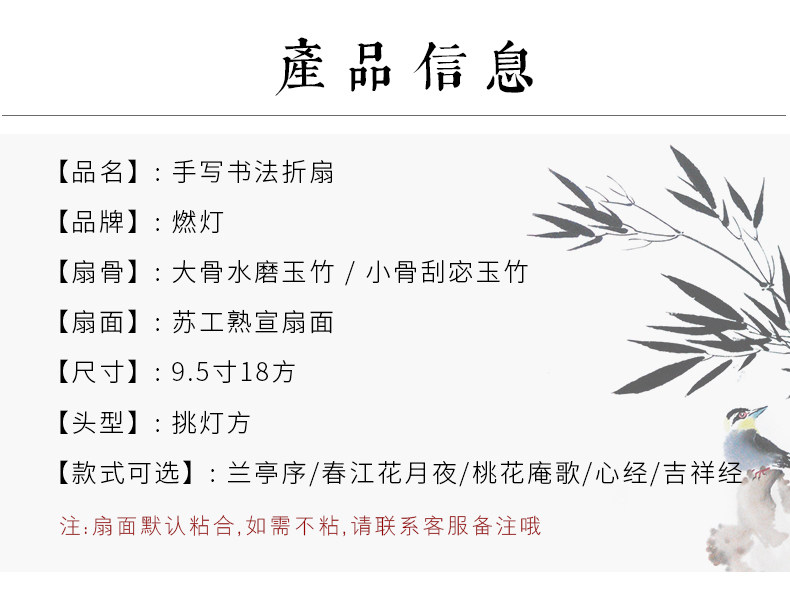 | Color Classification | Fortune Fu (Pre-Glued/Sent with Fan Box),Auspicious Sutra (Already Glued/Sent in a Fan Box),Qinyuan Spring Snow (Already Glued/Sent in a Fan Box),Wine Will Be Delivered (Already Glued/Sent in a Fan Box),Golden Light Mantra (Already Glued/Sent in Fan Box),Spring River Flower Moon Night (Already Glued/Sent in a Fan Box),Six Commandments (Already Glued/Sent in Fan Box),Xia Ke Xing (Already Glued/Sent in a Fan Box),Customized Inscription Photo Shoot[Contact Customer Service to Place an Order],Peach Blossom Pavilion Song (Pre-Glued/Sent with Fan Box),Pure Sutra (Already Glued/Sent in Fan Box),Preface to Lanting (Already Glued/Sent in Fan Box),Heart Sutra (Already Glued/Sent in Fan Box) |