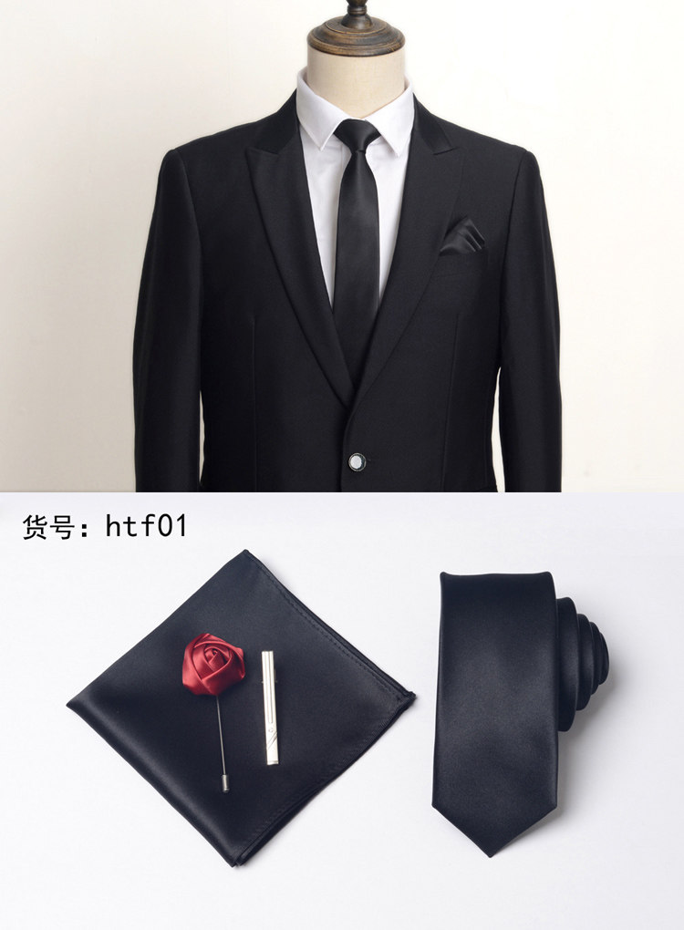 Don River Black Tie Men's Formal Business Suit Pocket Square Handkerchief Wedding Groom Tie Clip Corsage Set