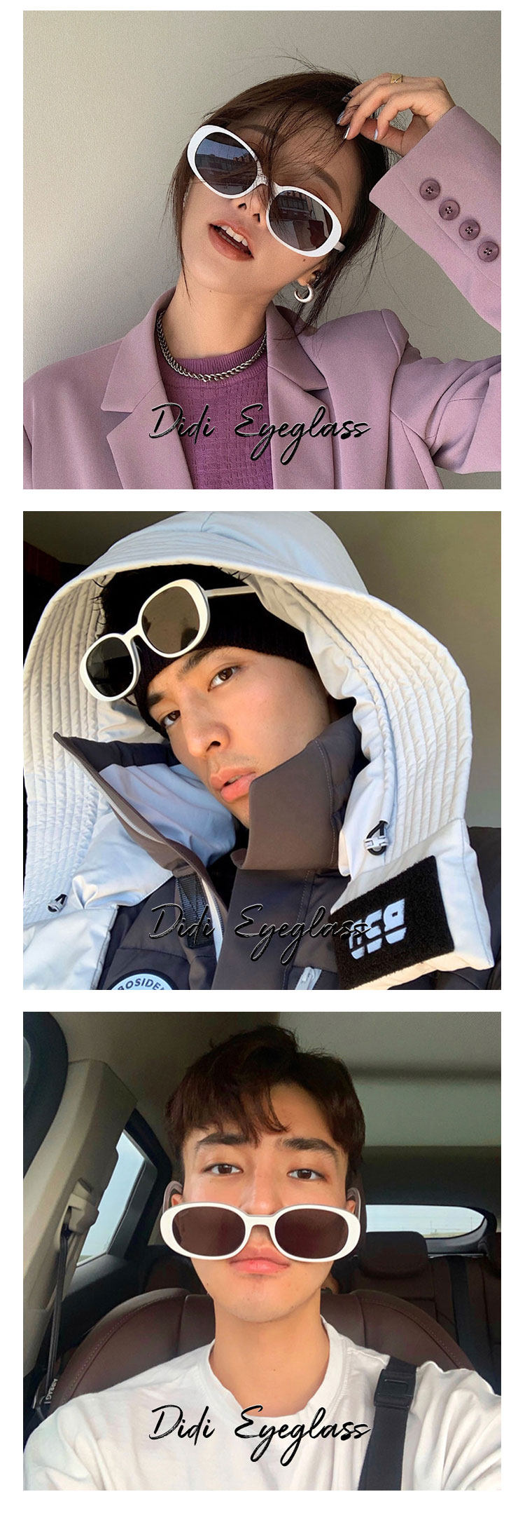 Korean Style Retro Oval White Sunglasses for Women ins Internet Celebrity Style Hot Girl Glasses for Round Faces Slimming Sunglasses for Men Trendy