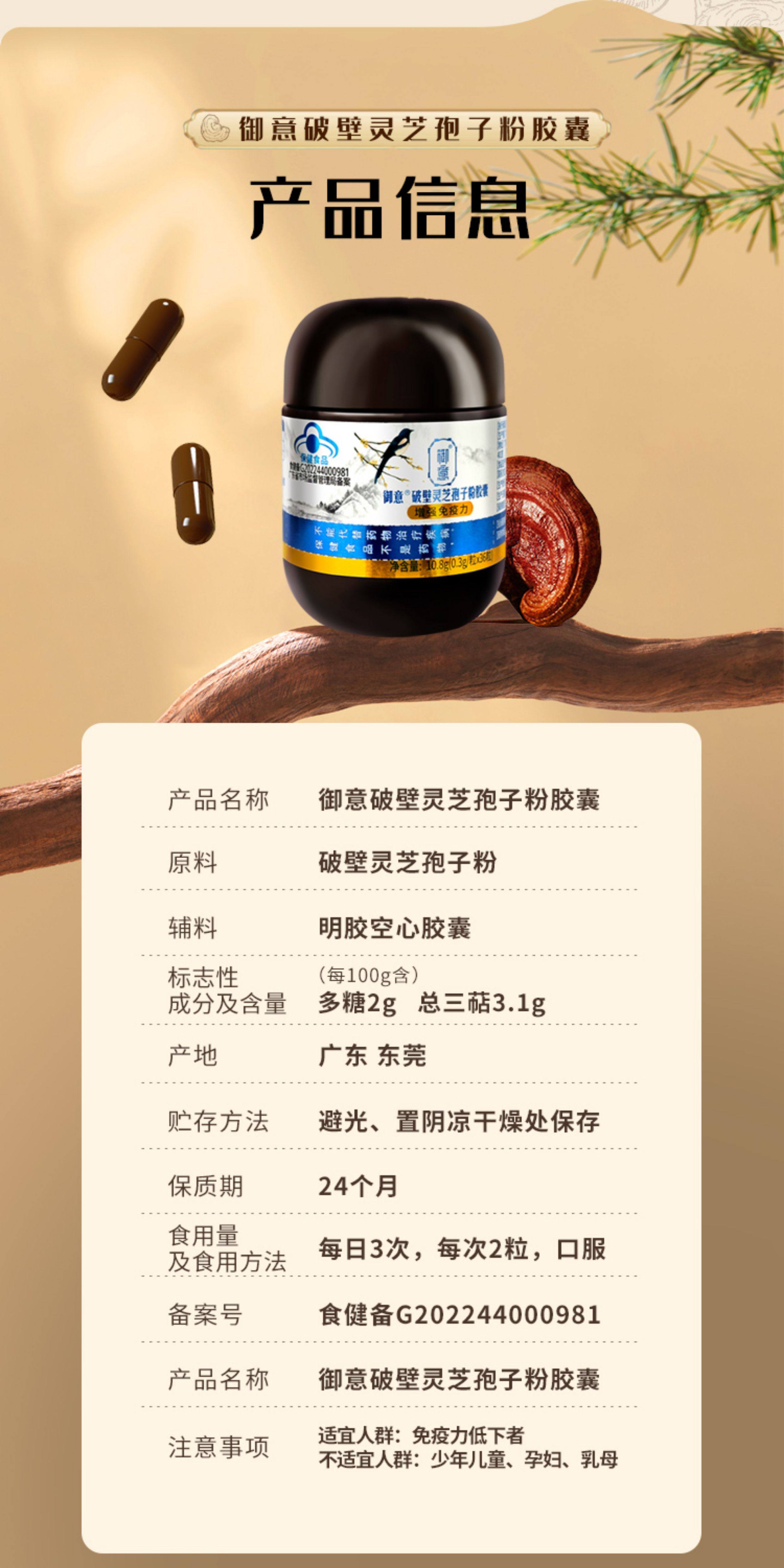 | Color Classification | Broken Ganoderma Spore Powder Capsules (36 Capsules/Bottle) |
