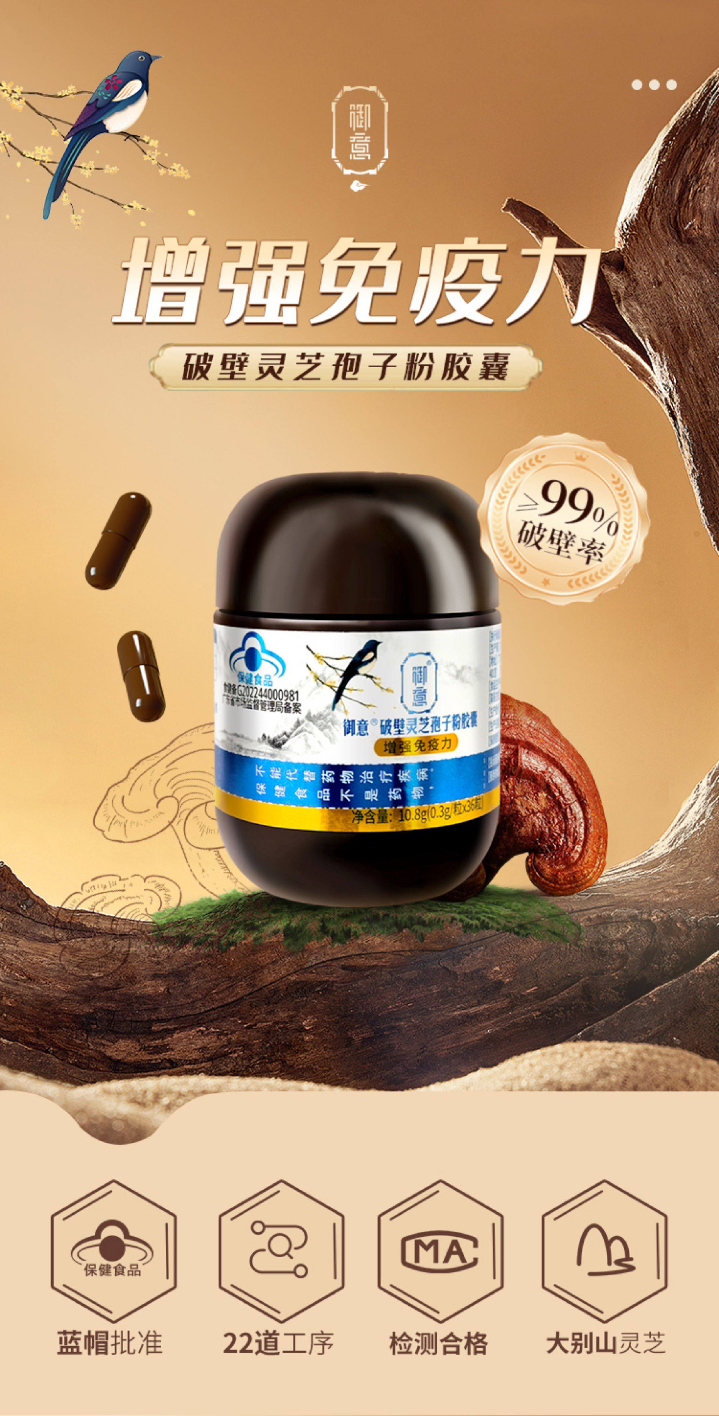 Yuyi Ganoderma Spore Powder Capsules, Health Supplement for Middle-Aged and Elderly People, Official Store Genuine Product