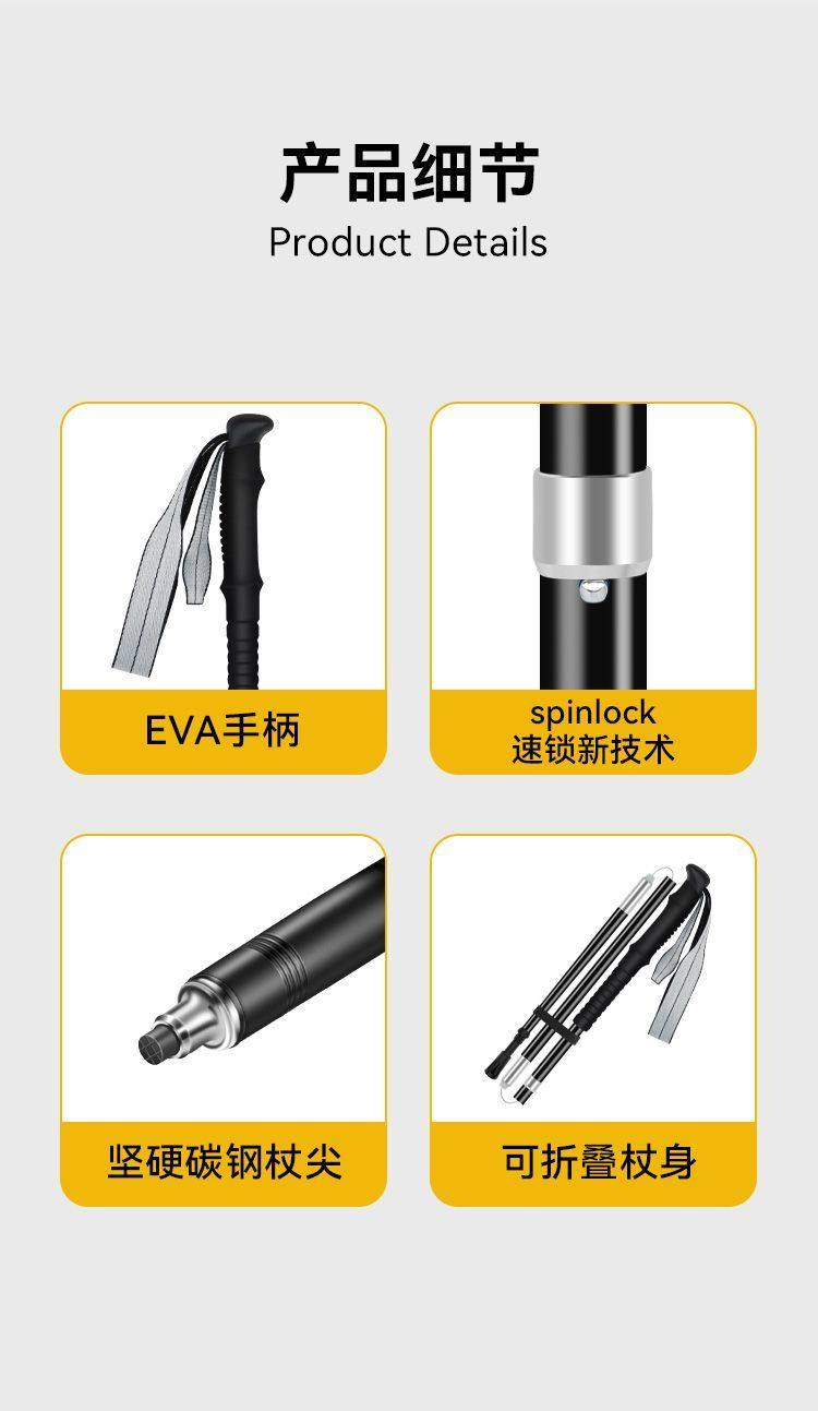 Fishing Bear Four-Section Aluminum Alloy Folding Trekking Pole Ultra-Light Storage Walking Stick Outdoor Hiking Gear Camping Cane