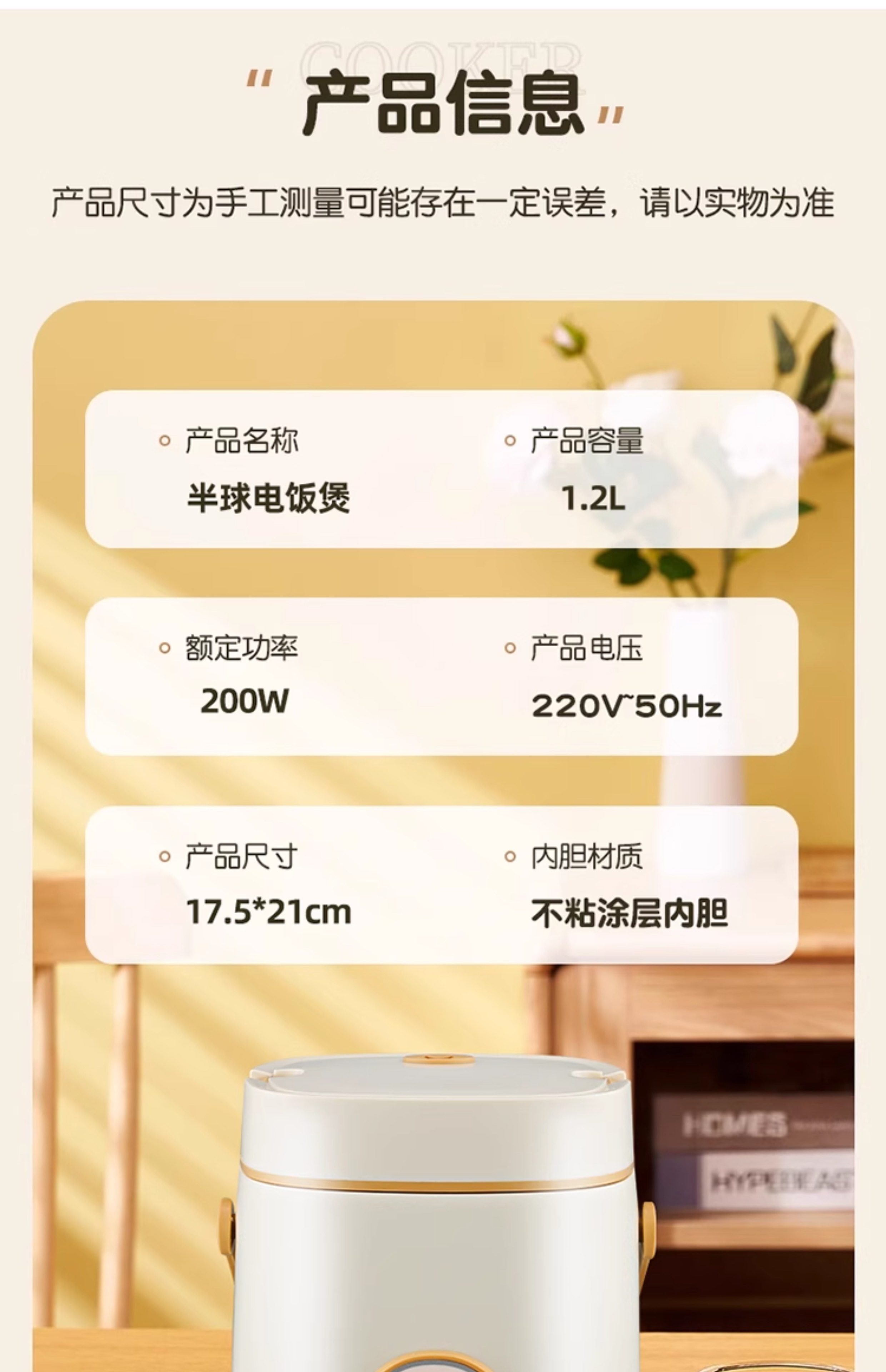 | Color Classification | Beige 1.2L Ordinary Liner for 1 Person,Beige 1.2L Citrine Liner for 1 Person + Steamed Butterfly,Beige 1.2L Ceramic Glazed Inner Pot for 1 Person + Steamed Butterfly,Beige 1.8L Ordinary Liner for 1-2 People,Beige 1.8L Citrine Inner Pot, Serves 1-2, with Steaming Rack,Beige 1.8L Ceramic Glazed Inner Pot for 1-2 People + Steamed Butterfly,Tea Green 1.2L Standard Liner - Single Serving,Tea Green 1.2L Citrine Liner for 1 Person + Steamed Butterfly,Tea Green 1.2L Ceramic Glaze Inner Pot for 1 Person + Steamed Butterfly,Tea Green 1.8L Standard Liner, Suitable for 1-2 People,Tea Green 1.8L Citrine Liner for 1-2 People + Steamed Butterfly,Tea Green 1.8L Ceramic Glaze Inner Pot for 1-2 People + Steamed Butterfly |