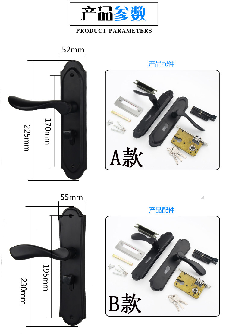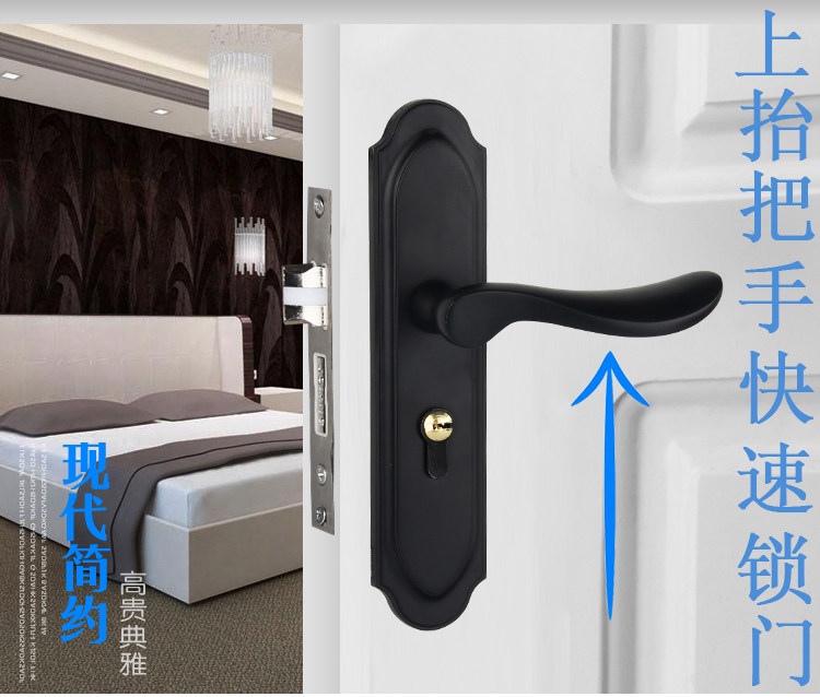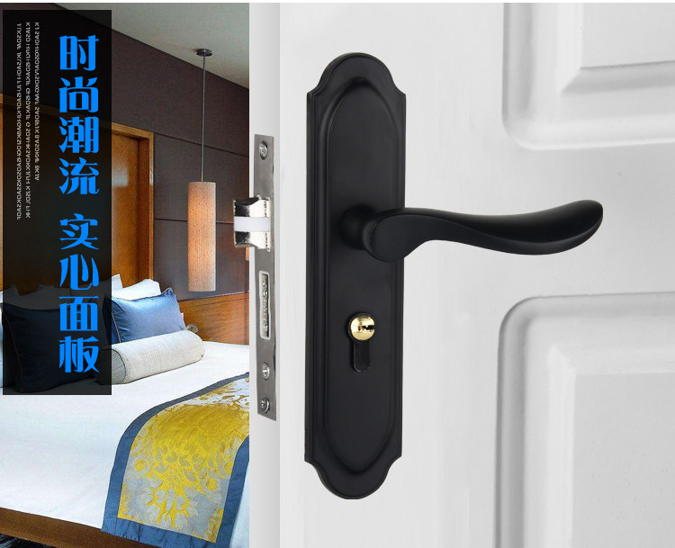 European Black Wooden Door Lock Indoor Steel Wooden Door Lock Silent Bedroom Door Lock Universal Room Door Lock Three-Piece Set
