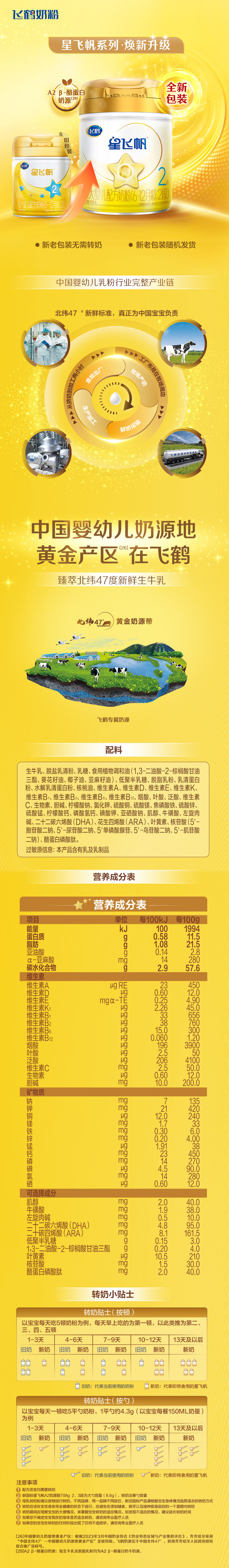 [Official Genuine Product] Feihe Xingfeifan A2Β Casein Milk Source Stage 2 Infant Formula 708g*6 Cans 5Hmos