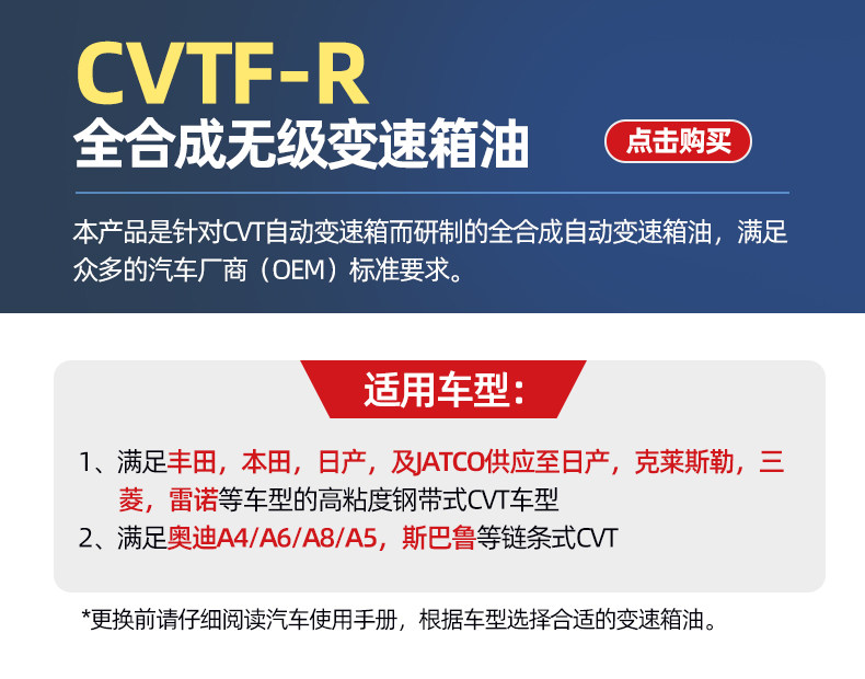 Nobelrun Cvt Fully Synthetic Stepless Transmission Oil Cvtf-R Universal Transmission Oil 1L Pack
