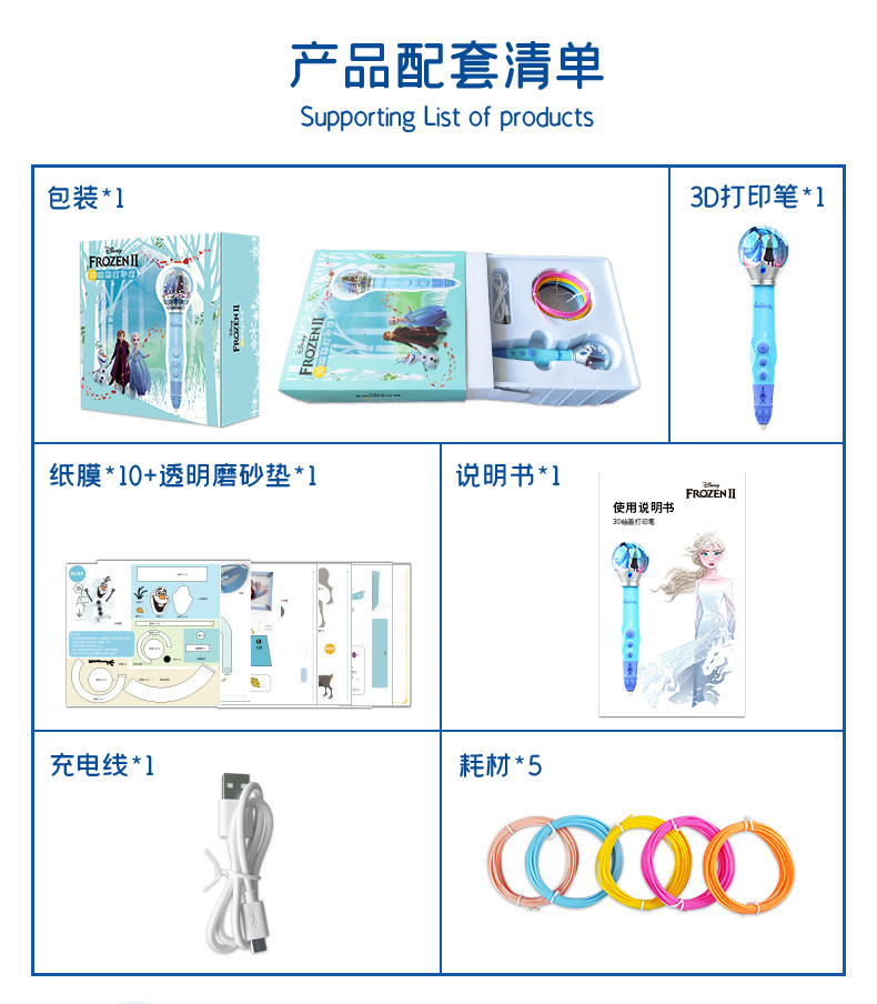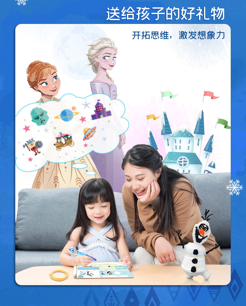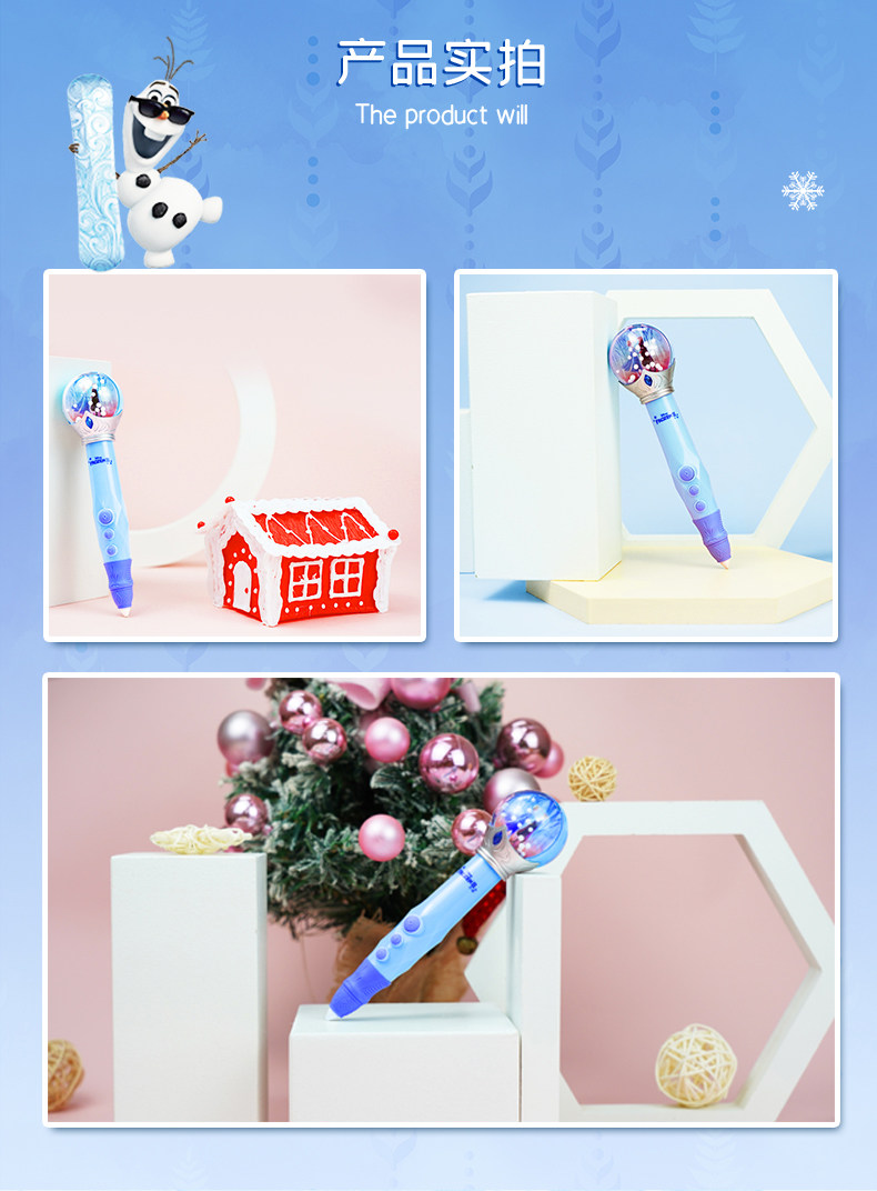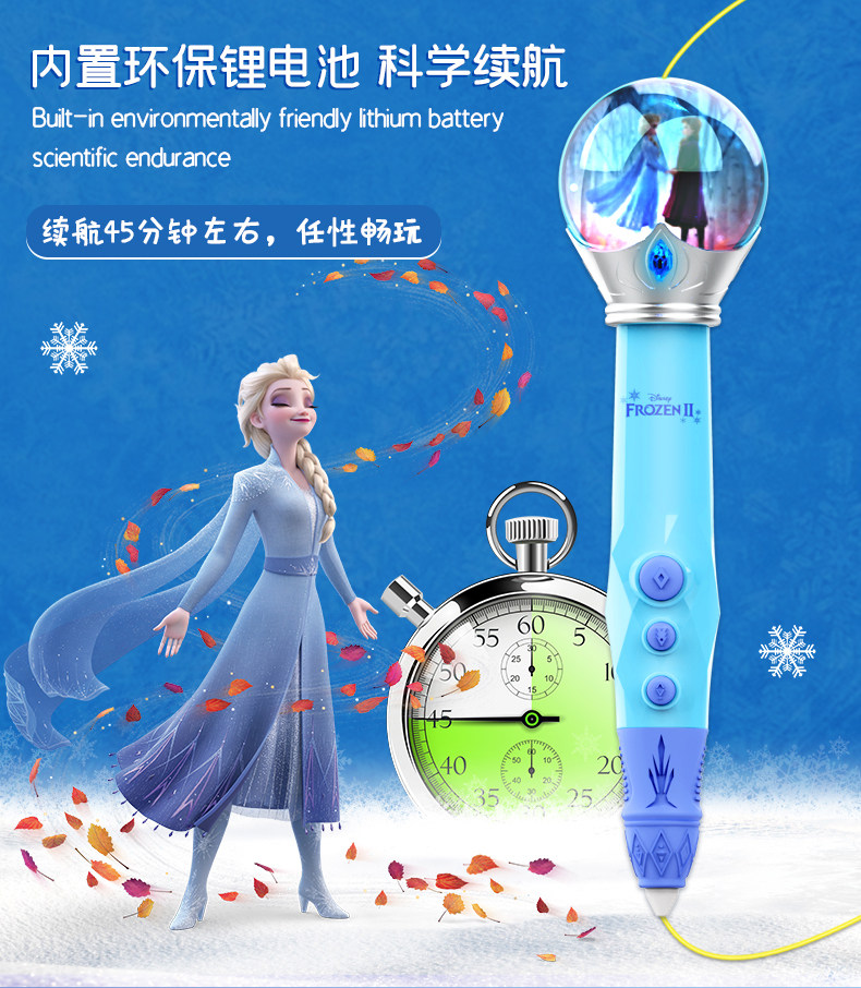 Frozen Disney 3D Printed Elsa Children's 3D Stereoscopic Painting, 3D Charging, Low Temperature, Non-Hot to the Touch, Multifunctional Magic, Popular among Internet Influencers, Elementary School Student Princess 4D Printing