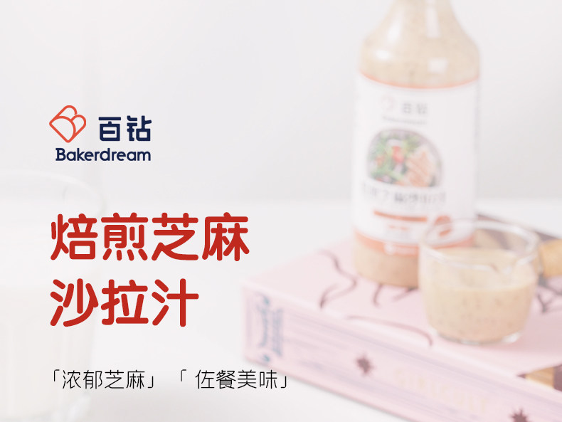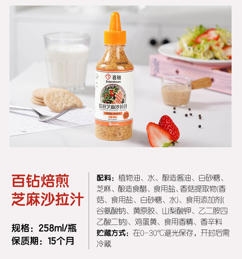 Baizuan Roasted Sesame Salad Sauce 258ml, Mixed Fruit and Vegetable Salad Dressing, Sandwich, Sushi, Hot Pot Seasoning Sauce