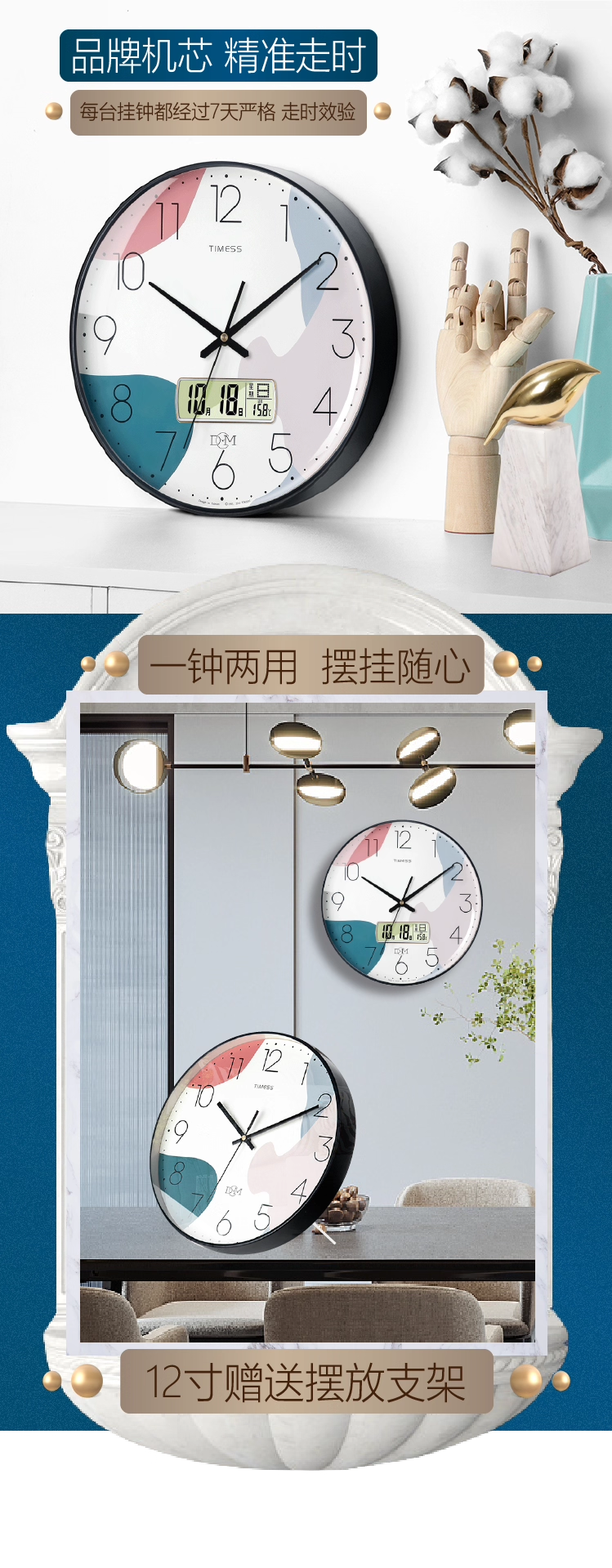 Timess Clocks, Wall Clocks, Living Room Home Use, Stylish Clocks, Wall-Mounted, Modern Minimalist Perpetual Calendar, Electronic Quartz, Light Luxury