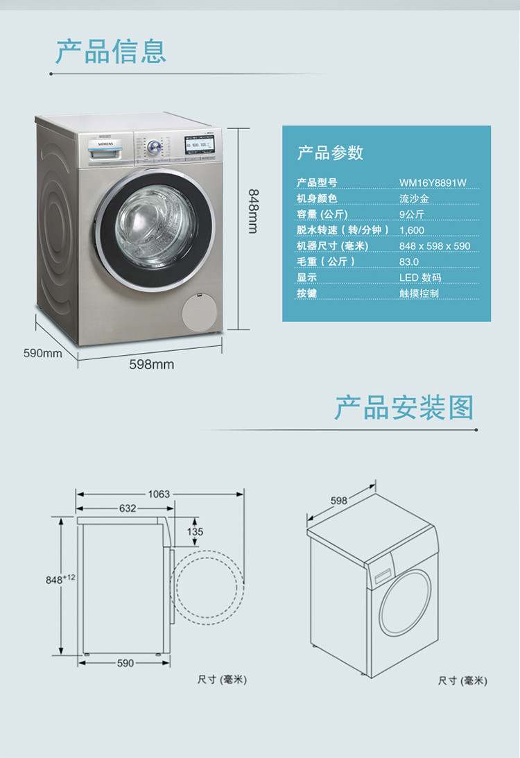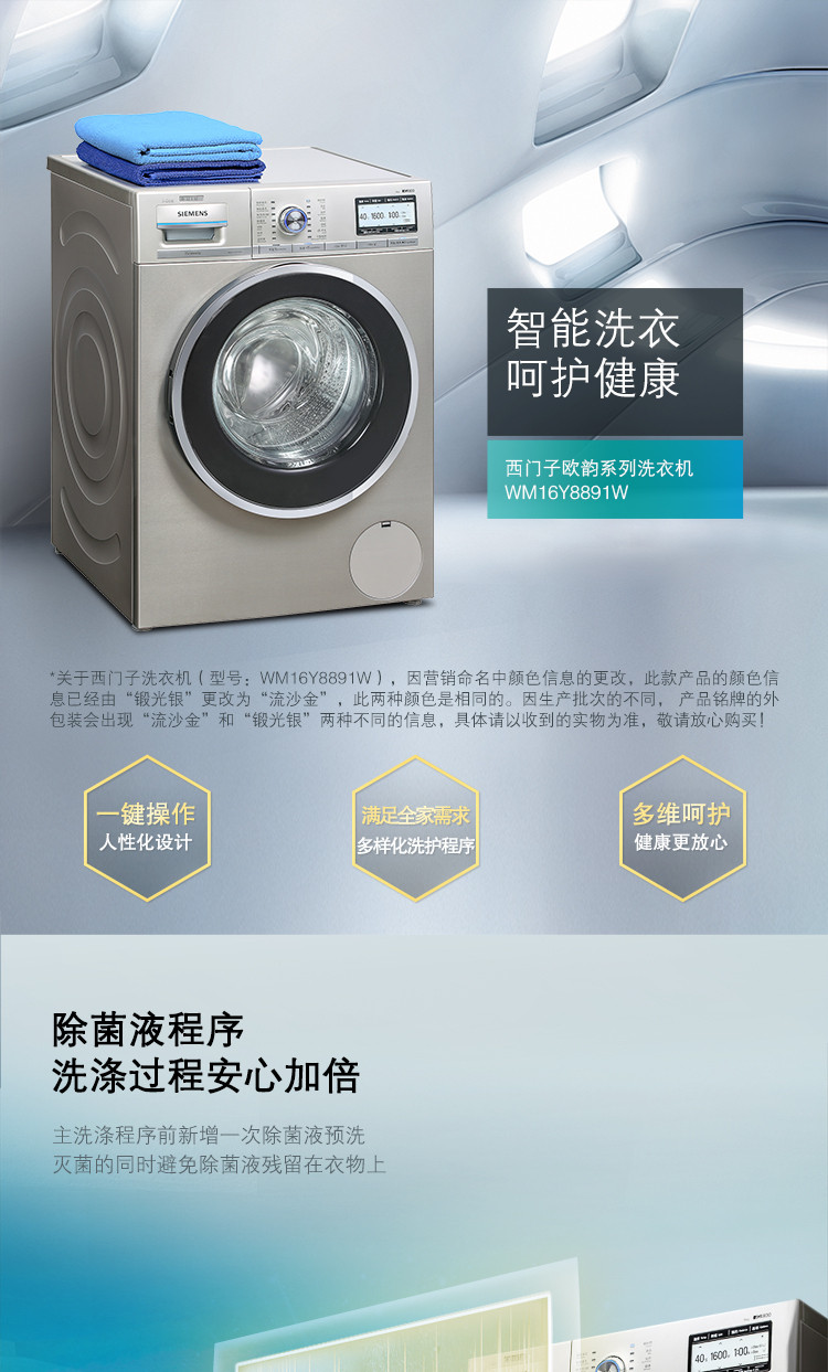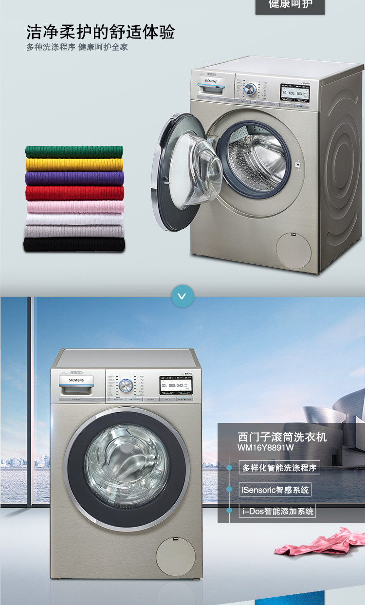 Siemens Fully Automatic Inverter Drum Washing Machine Wm16Y8891W 9kg Large Capacity Intelligent Washing
