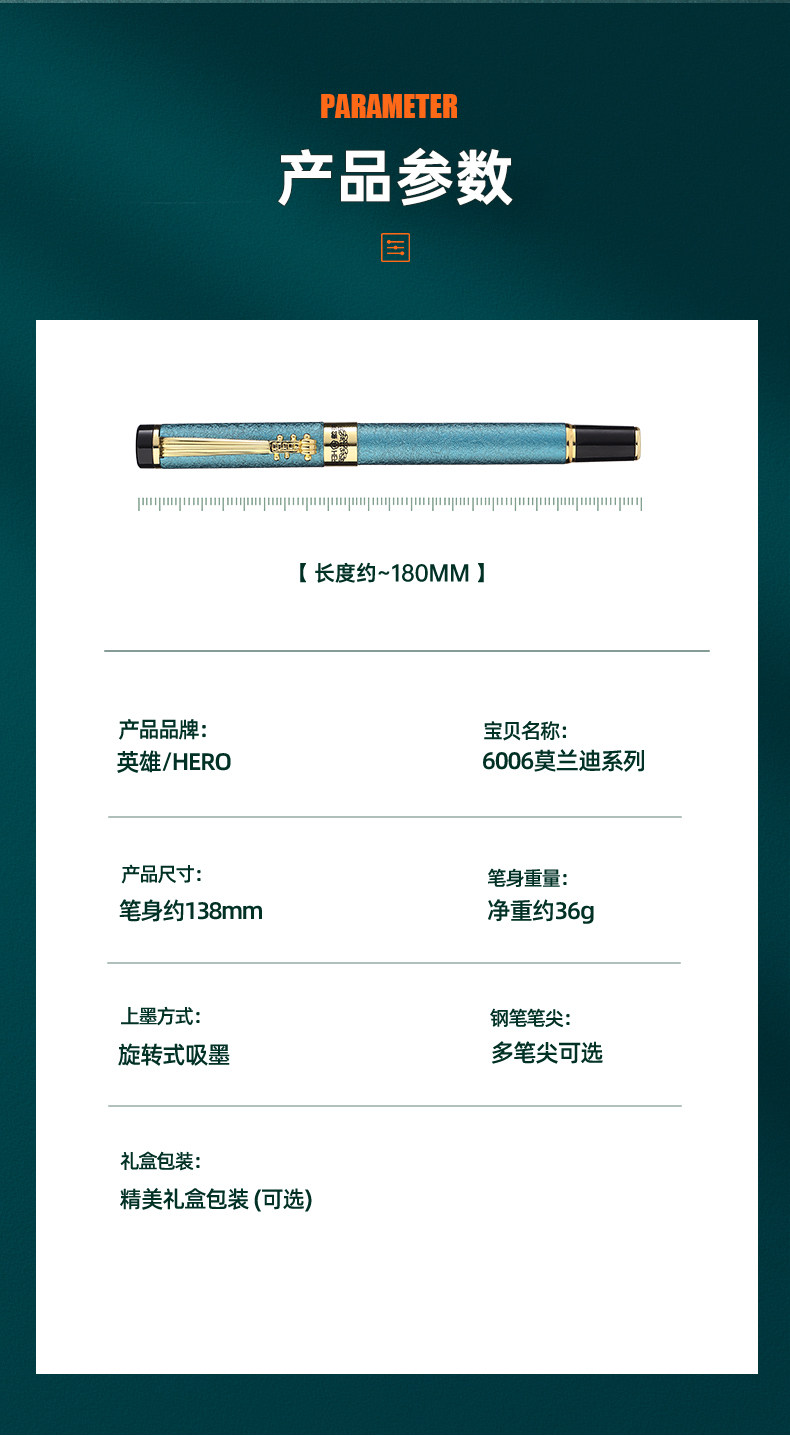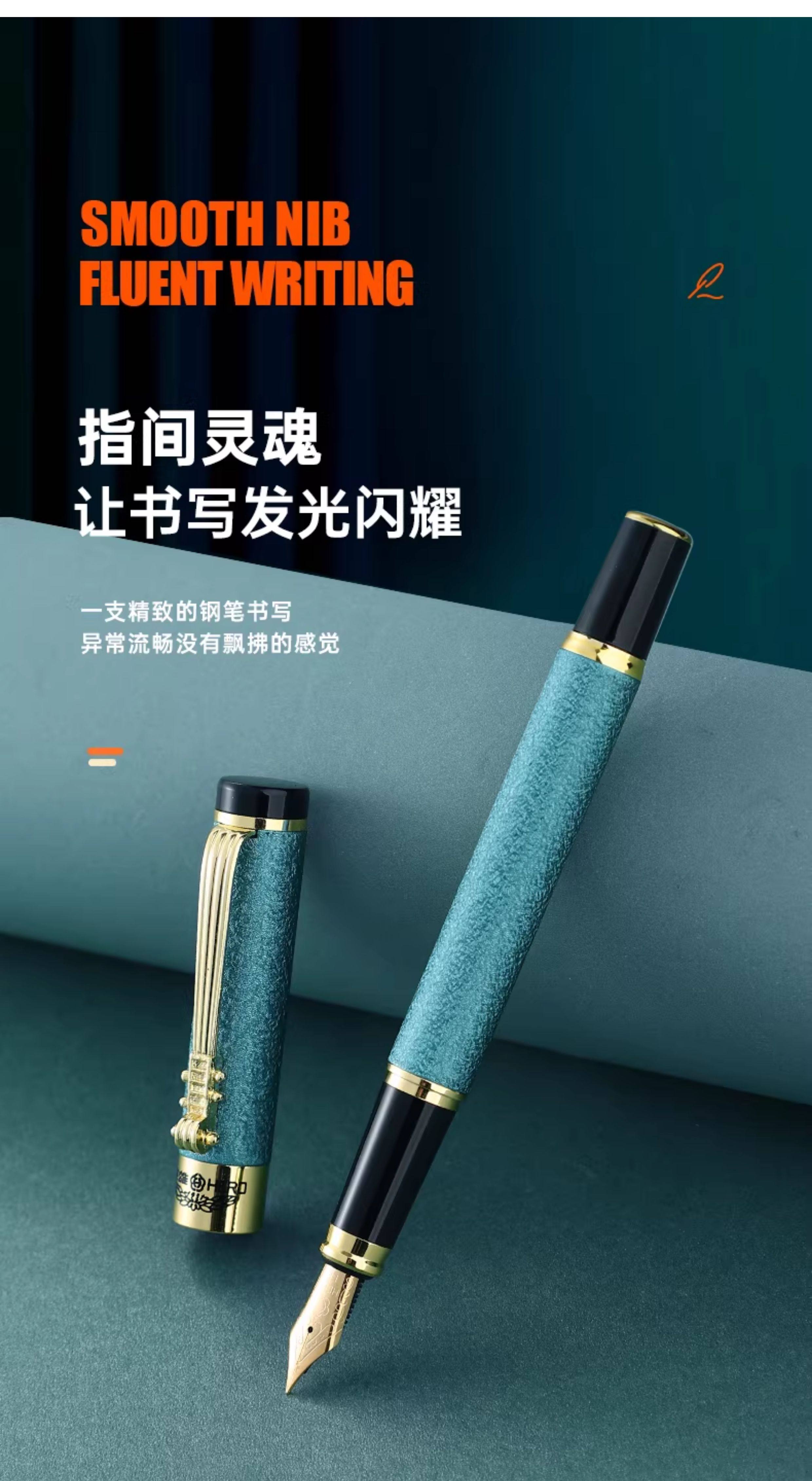 Hero Fountain Pen for Men, High-End Business Office Art Pen, Calligraphy Curved Nib, Calligraphy Hard Pen, Refillable Ink Cartridge, Exquisite Gift, Suitable for Elementary School Students in Grades Three and Four