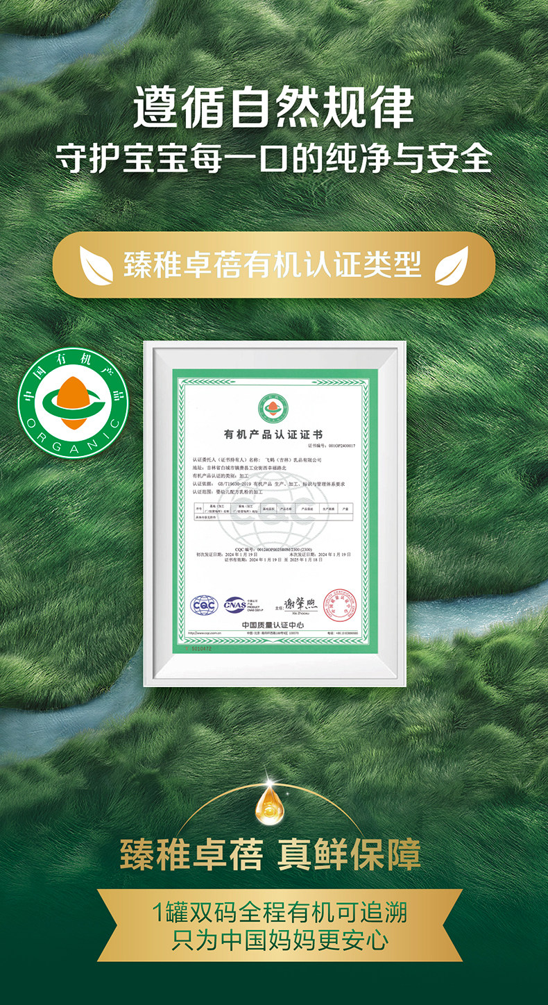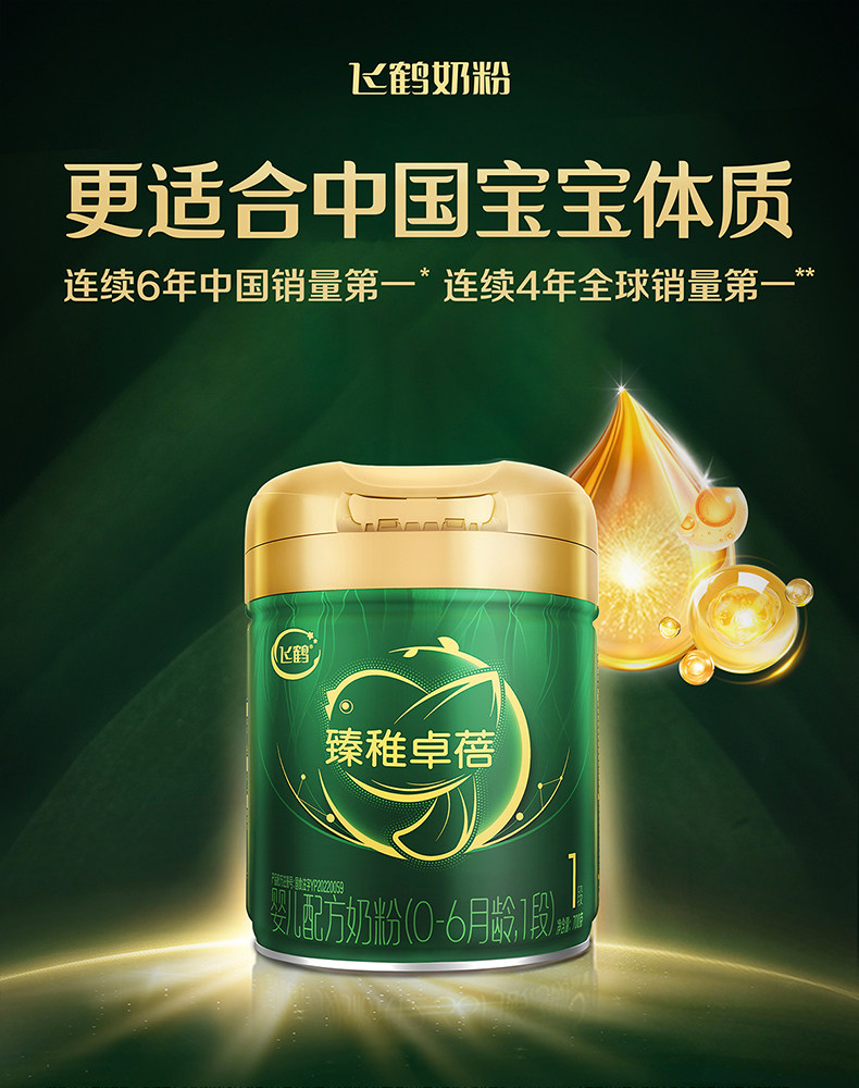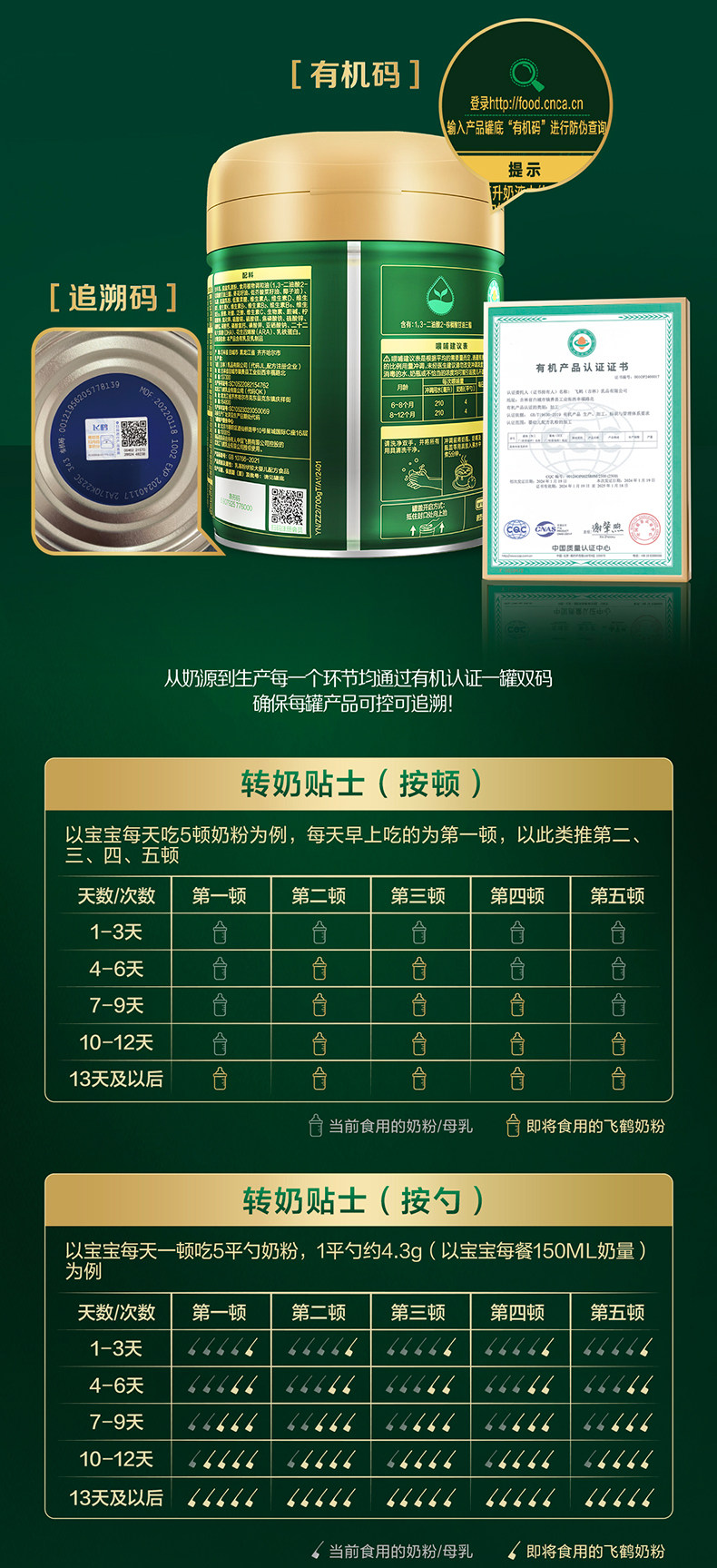 Feihe Zhenzhi Zhuobei Organic Stage 1 Infant Formula Milk Powder 0-6 Months 700g*6 Cans