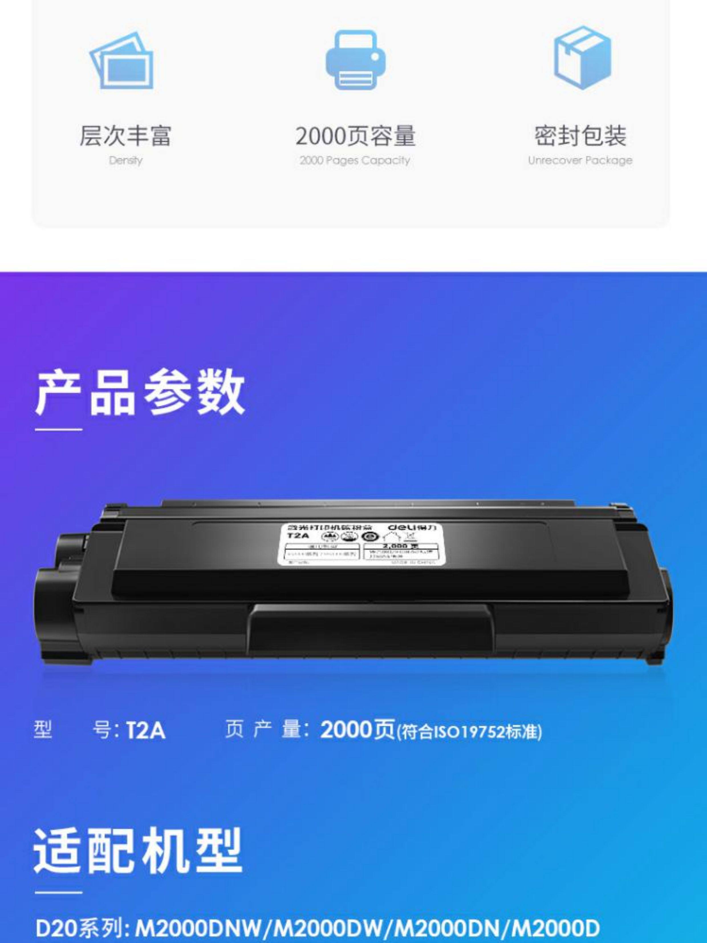 | Color | Original Deli T2A Toner Cartridge Can Print about 2000 Pages,Original Deli T2 Toner Cartridge Can Print about 4500 Pages |