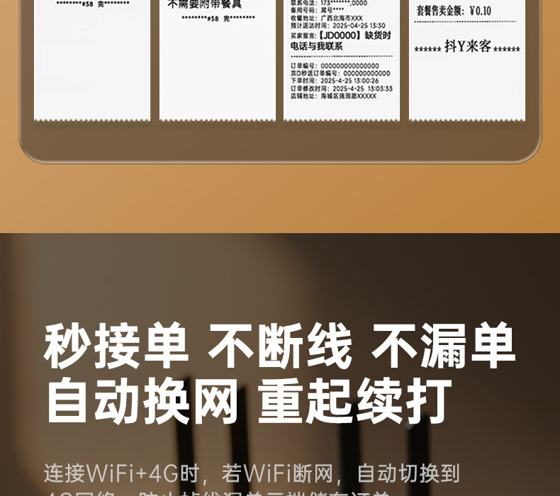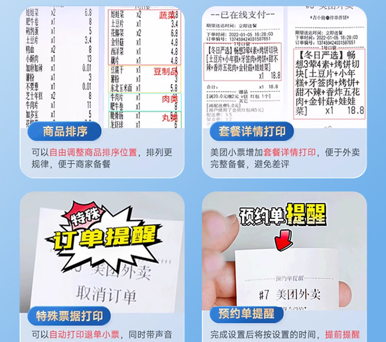 | Color Classification | ✅One Machine Supports Jd.Com Takeaway/Meituan/Ele.Me/Douyin Laike/Douyin Group Buying/Hours Delivery/Meituan Group Buying/Mini Program...,✅❤↓↓↓The Red Model Is Newly Launched! Make Your Takeout Business so Popular That You Can’T Negotiate↓↓↓,Clearance Sale✅58Iihv [Wifi+Usb+Real Voice+Hand-Torn Paper] Free 20 Rolls of Paper,Clearance Sale✅58Iihv [Wifi+Bluetooth+Usb+Real Voice+Hand-Tearing] Free 20 Rolls of Paper,Clearance Sale✅58Iihv [4G+Usb+Real Voice+Hand-Torn Paper] Free 20 Rolls of Paper + 4g Card,T58H Red Edition [Dual-Band Wifi + Bluetooth + USB + Real-Person Voice Prompts + Manual Tear-Off] - Includes 10 Rolls of Paper,T58H Red Edition [4g + Bluetooth + USB + Real-Person Voice + Manual Tear-Off] Includes 10 Rolls of Paper + 1 Year of Data,T58H Red Edition [4g + Dual-Band Wifi + Bluetooth + USB + Real-Person Voice Prompts + Manual Tear-Off] Includes 10 Rolls of Paper + 1 Year of Data,C58H Red Model [Dual-Band Wifi + Bluetooth + USB + Real-Person Voice Guidance + Automatic Paper Cutting] - Includes 10 Rolls of Paper,C58H Red Edition [4g + Dual-Band Wifi + Bluetooth + USB + Real-Person Voice Guidance + Automatic Paper Cutting] Includes 10 Rolls of Paper + 1 Year of Data,❤"Golden Duo! Classic Takeout Printer – Orders Rolling in Like Clockwork.",T58H [Dual-Band Wifi + Bluetooth + Real Voice + Hand-Tearing] Free 10 Rolls of Paper,T58H [4g + Bluetooth + Real Voice + Manual Tear] Free 10 Rolls of Paper + 1 Year of Traffic,T58H [4g + Dual-Band Wifi + Bluetooth + USB + Real-Person Voice Prompts + Manual Tear-Off] Includes 10 Rolls of Paper + 1 Year of Data,C58H [Dual-Band Wifi + Bluetooth + Real Voice + Automatic Paper Cutting] Free 10 Rolls of Paper,58Iint [Dual-Band Wifi + Didi Voice + Hand-Tearing] Free 10 Rolls of Paper,58Iint [Dual-Band Wifi + Real Voice + Hand-Tearing] 10 Rolls of Paper Included,58Iint [4g + Live Voice + Hand-Tearable] Includes 10 Rolls of Paper + 1 Year of Data,❤↓↓↓ (Supports Jd.Com Delivery) Order Taking & Food Preparing All-In-One Machine: Instantly Prepare and Hand Out Meals after Receiving an Order – It's That "Fast"! ↓↓↓,T503 [Dual-Band Wifi + Bluetooth + Hand-Tear Paper] Takeaway Order/Delivery All in One, Free 10 Rolls of Paper,T503 [4g + Bluetooth + Manual Tear-Off] All-In-One Food Delivery Order Taking/Meal Dispatching System. Includes 10 Rolls of Thermal Paper + 1 Year of Data.,C503 [Dual-Band Wifi + Bluetooth + Automatic Paper Cutting] Takeaway Order/Delivery All in One, Free 10 Rolls of Paper,C503 [4g + Bluetooth + Automatic Paper Cutter] Takeaway Order/Meal Delivery All-In-One, Free 10 Rolls of Paper + 1 Year of Data |