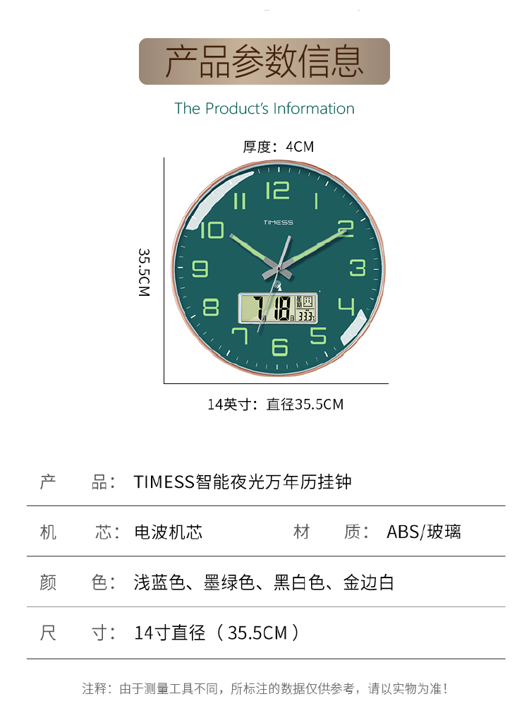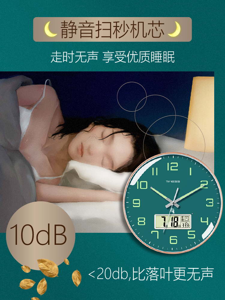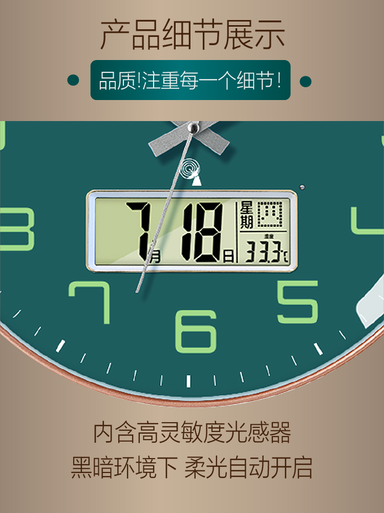 Timess Luminous Radio-Controlled Clock Electronic Clock Living Room Home Silent Wall Clock Light Luxury Decoration Personalized Creative Clock