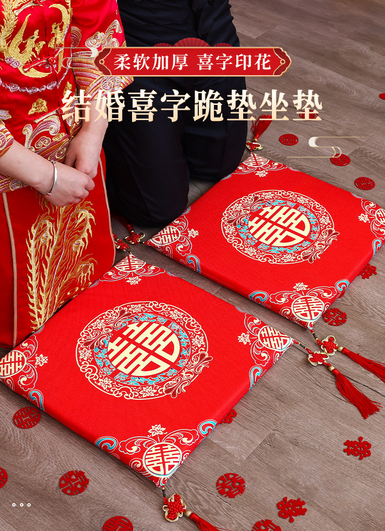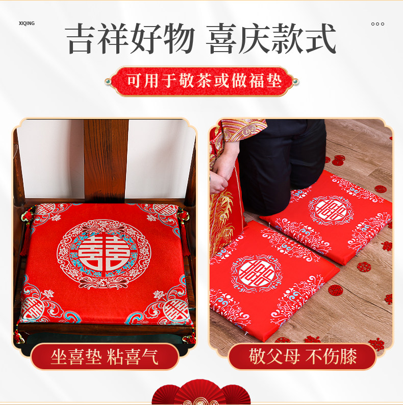 Wedding Kneeling Cushion, Wedding Tea Ceremony Cushion, Wedding Celebration Bride's Enlarged Sitting Cushion, a Pair of Creative Red Kneeling Cushions