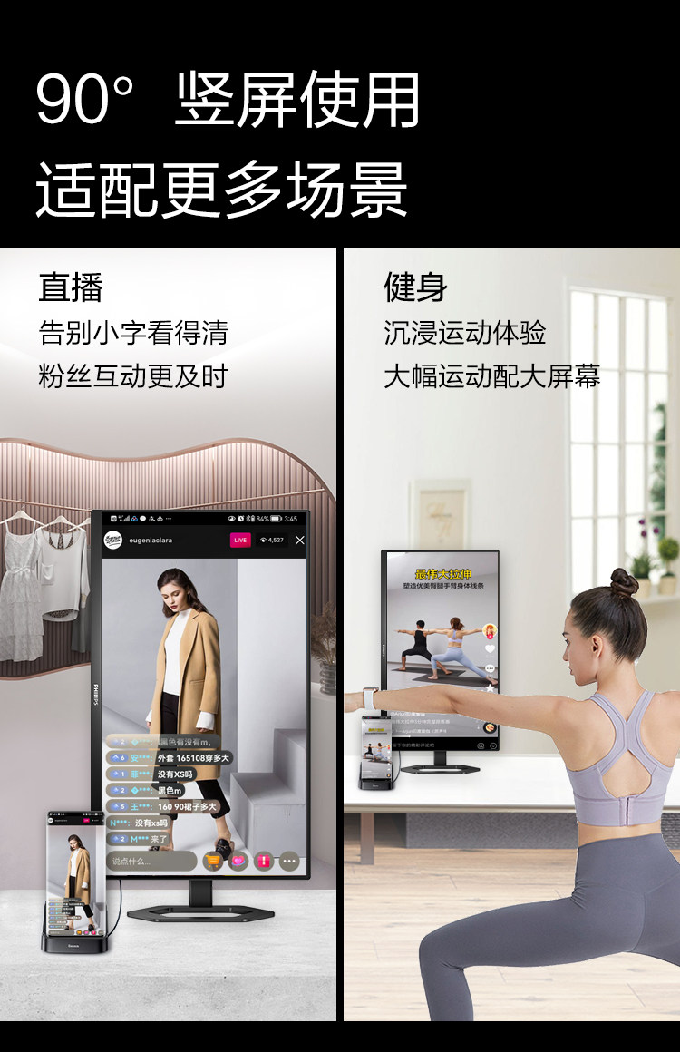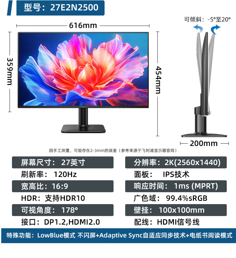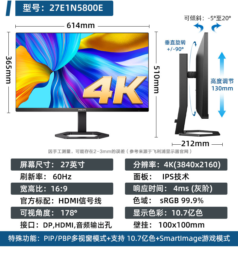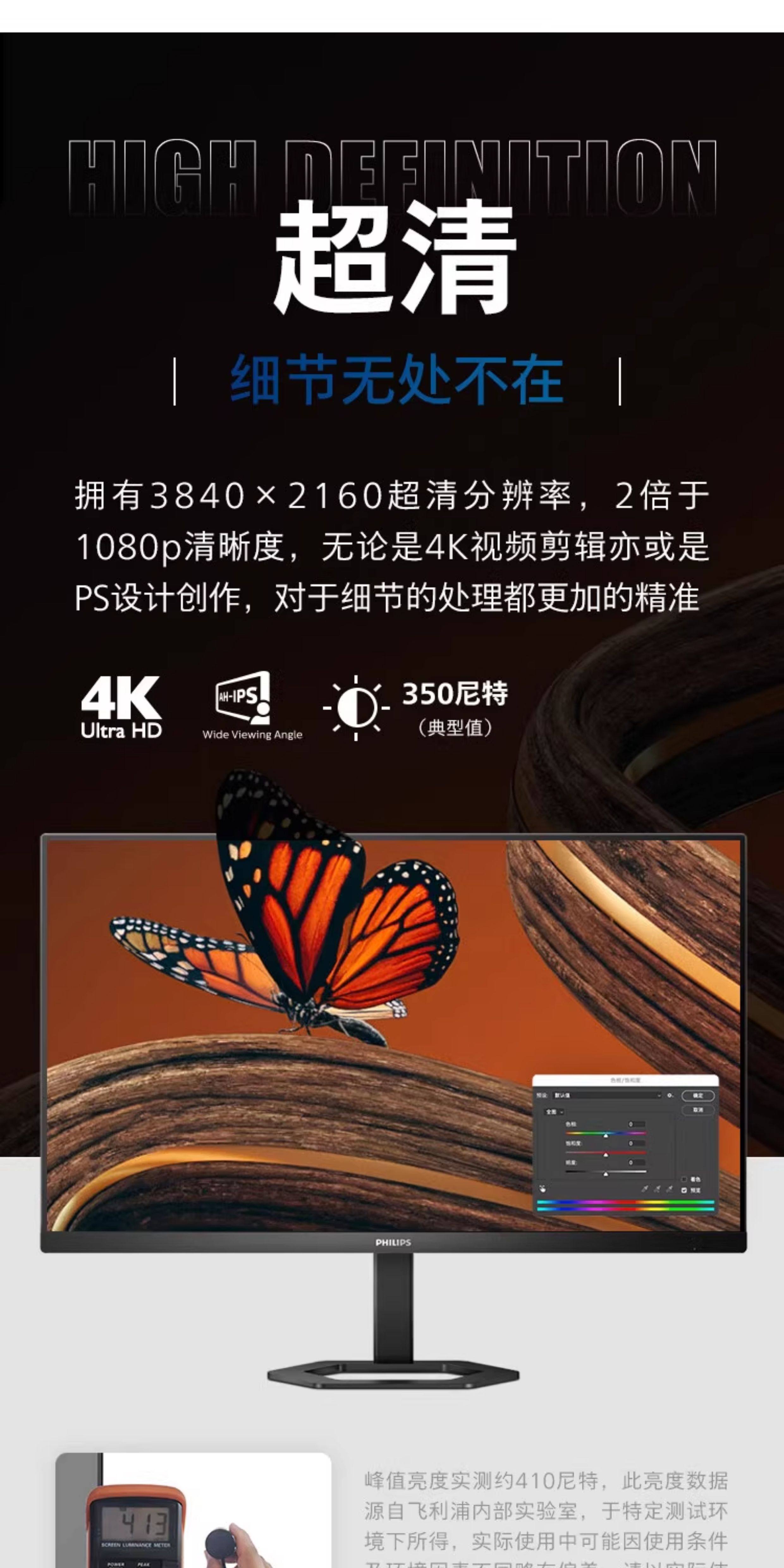 Philips 24/27-Inch 2K Monitor 4K High-Definition Office Gaming Desktop Computer Lcd Screen Ips Wide Color Gamut