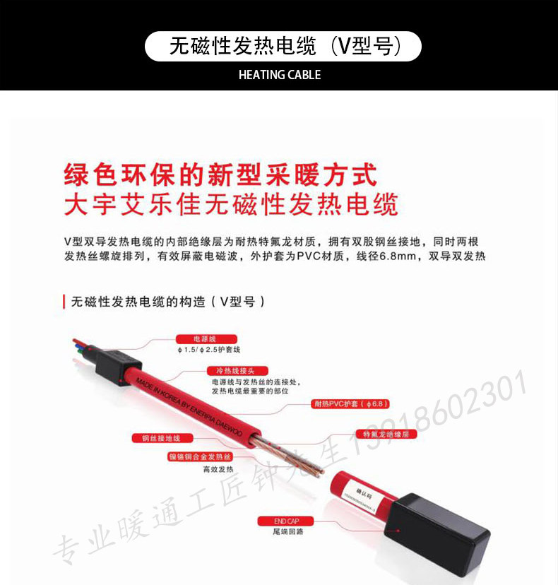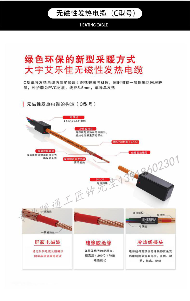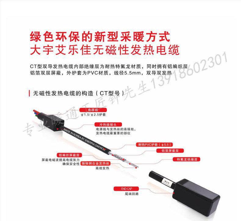 Shanghai Electric Floor Heating Home Kit Complete Set Daewoo Heating Dual-Conductor Cable Yoga Studio Heating System Imported from Korea