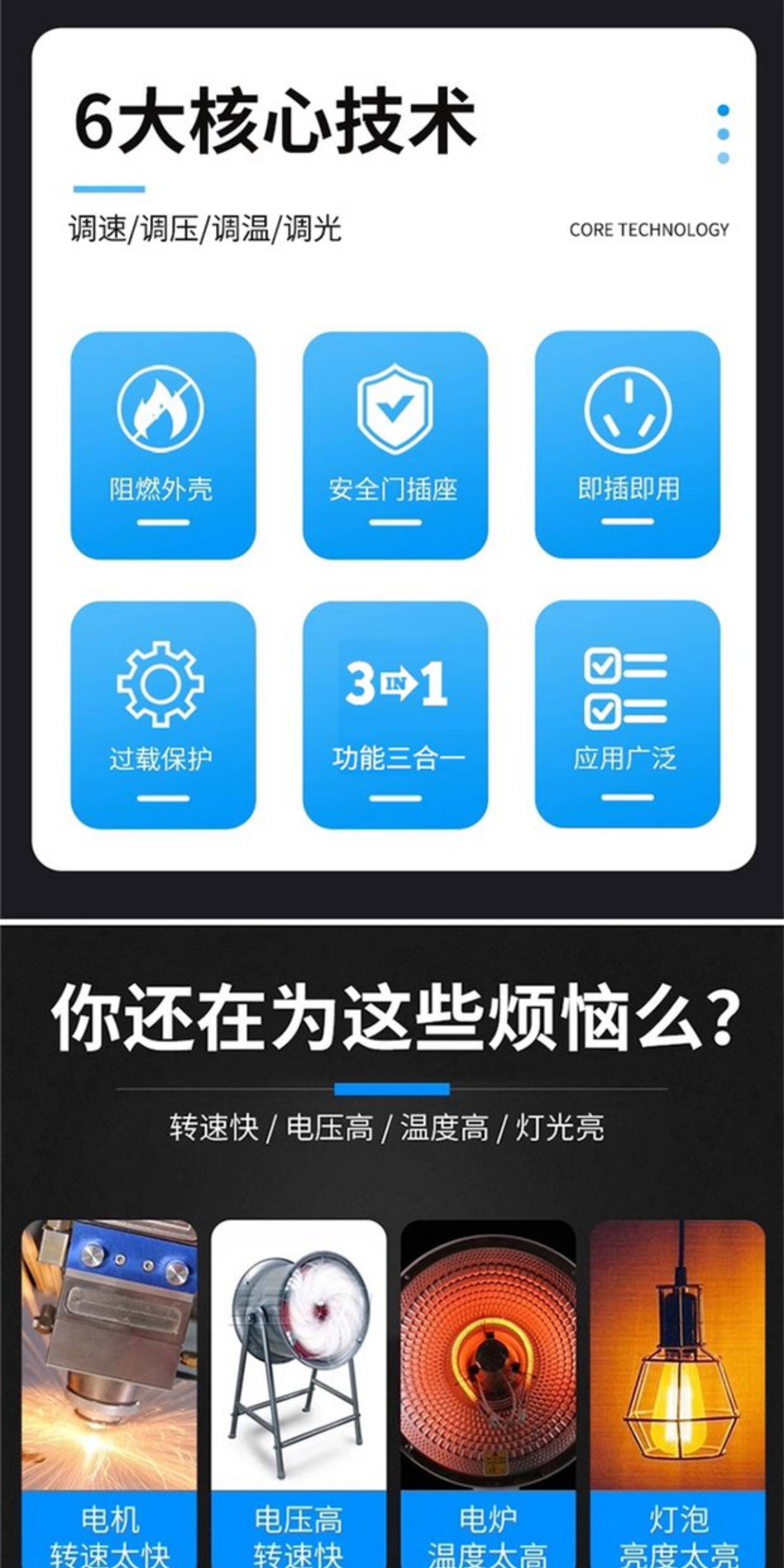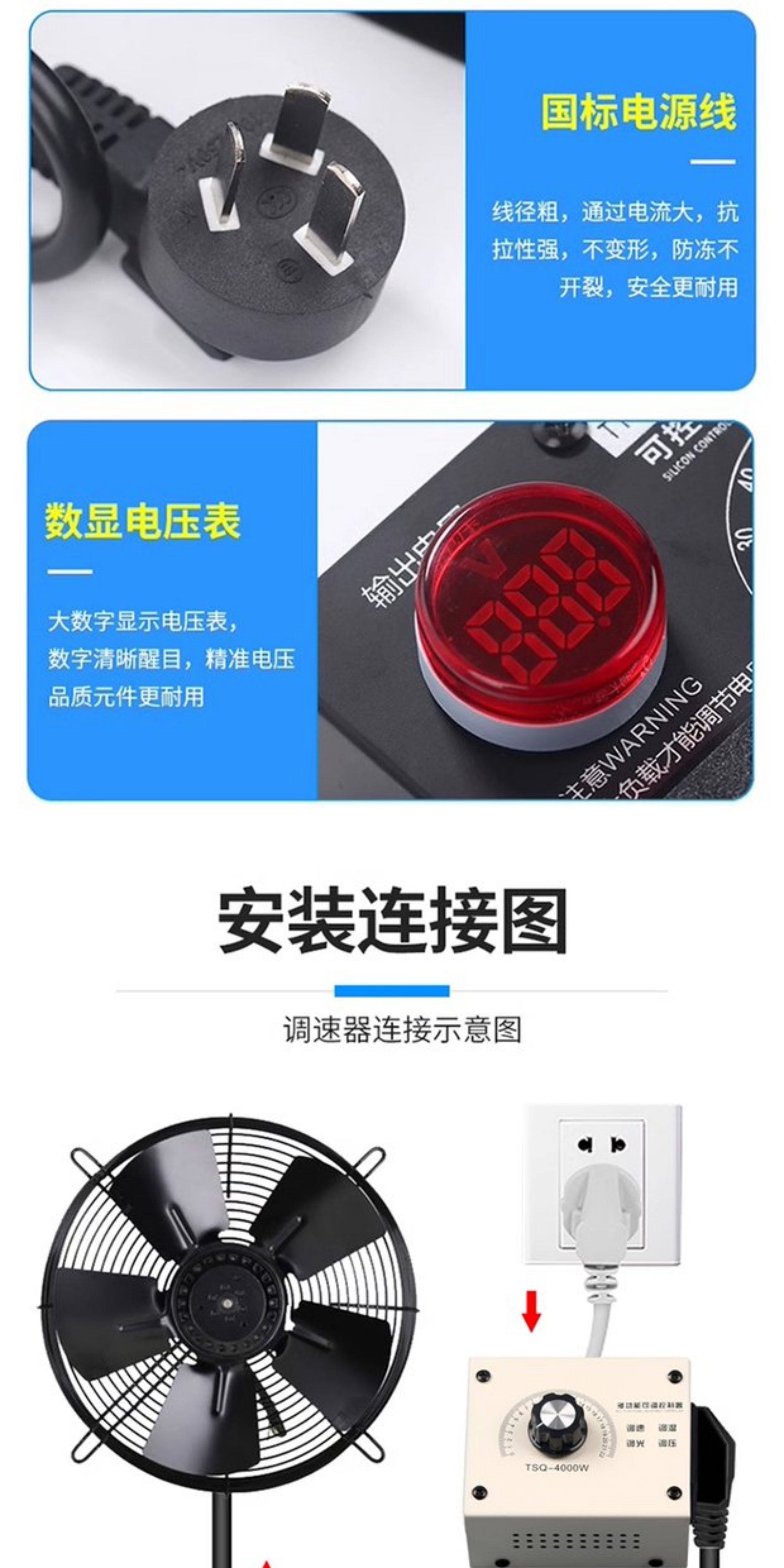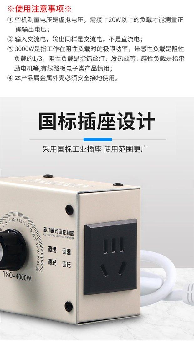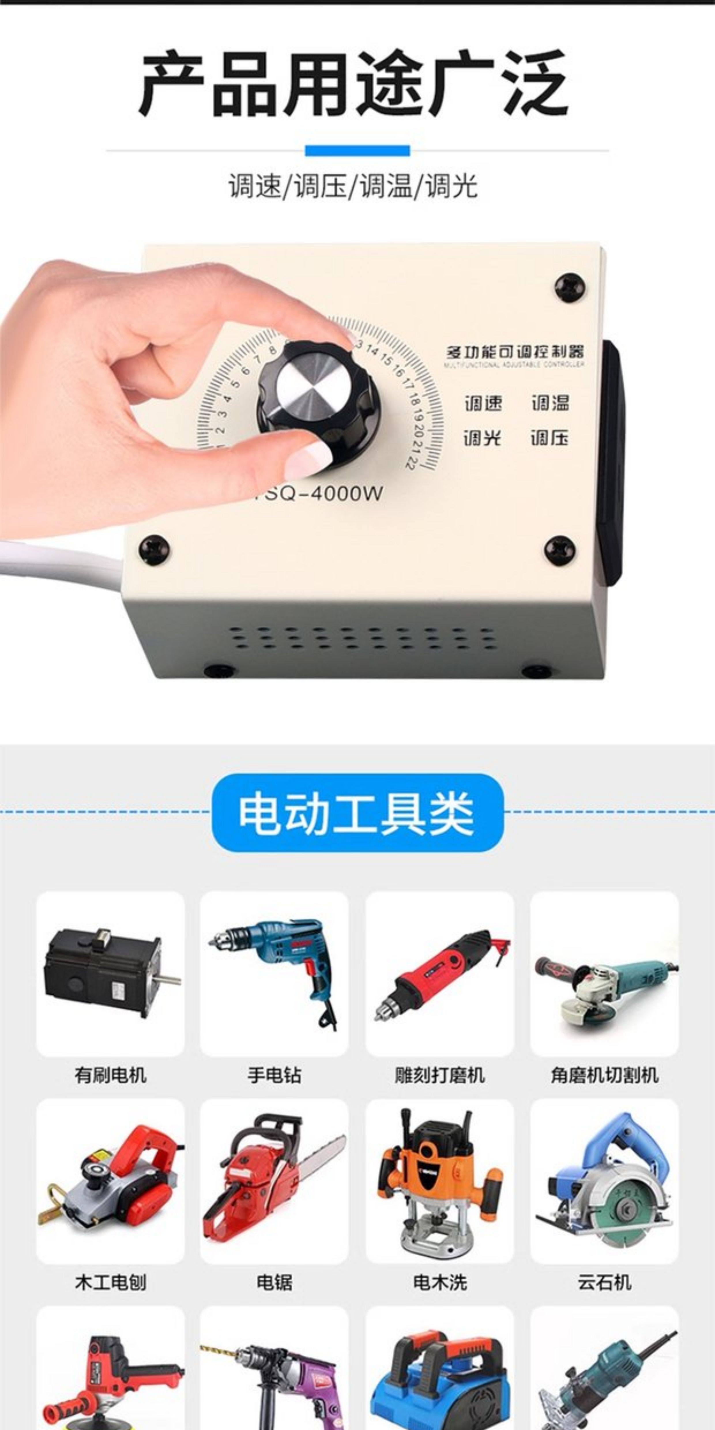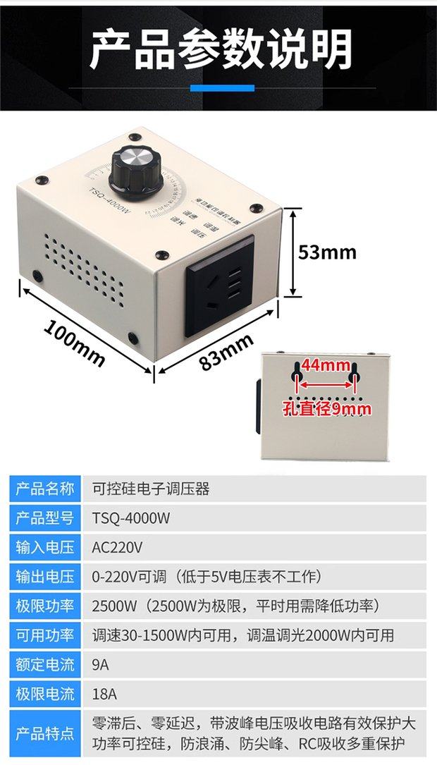 220V Blower Speed Controller Exhaust Fan Ceiling Fan Angle Grinder Stepless Speed Switch Electronic Voltage Regulator Electric Furnace Temperature Control