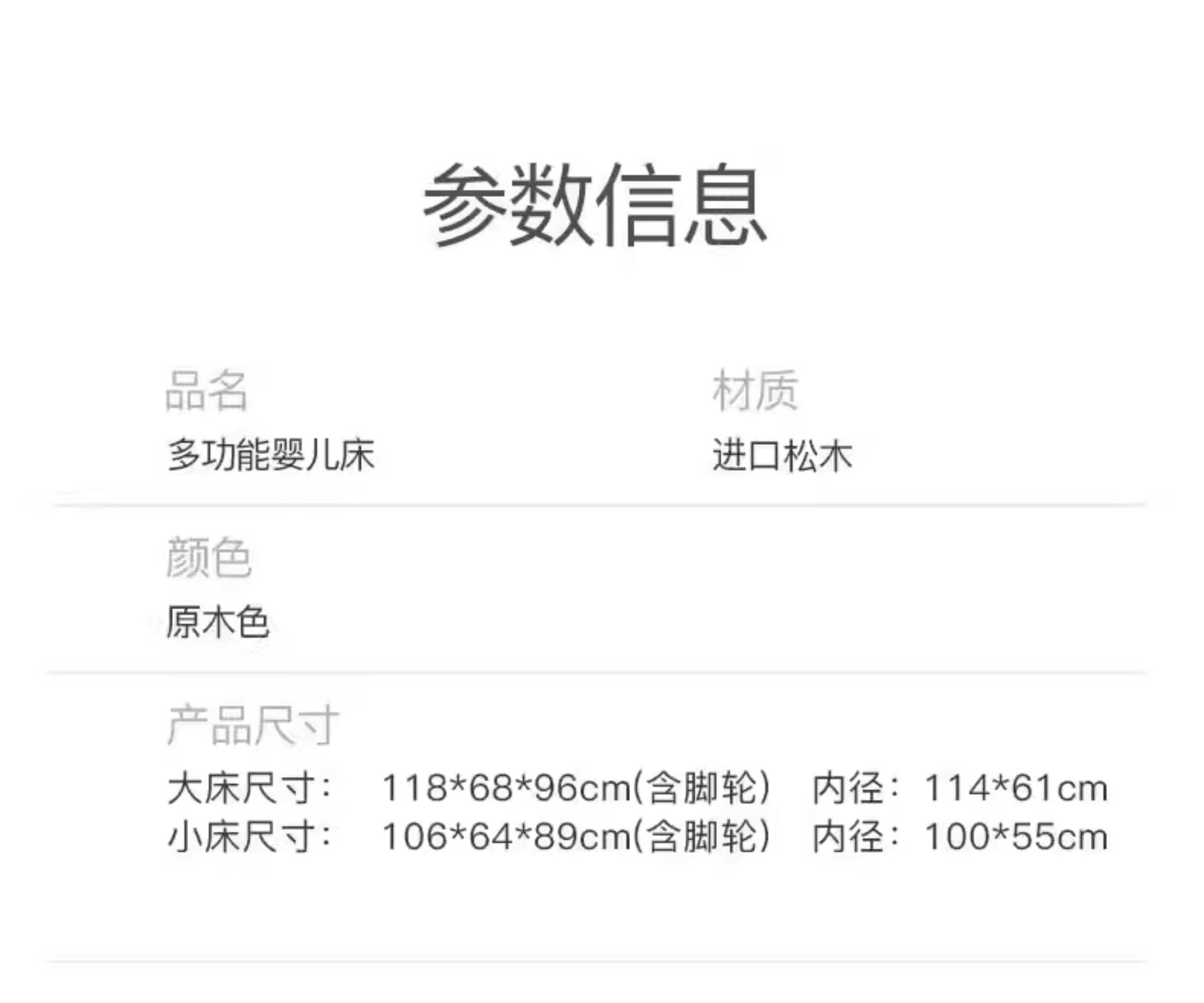 | Color Classification | Small Bed[No Mosquito Net],Cot + Mosquito Net,Small Bed + Brown Mattress[Includes Mosquito Net],Crib + Lace Trim Pink under the Sea[Includes Mosquito Net],Crib + Lace Blue Whale[Includes Mosquito Net],Crib + Lace Cute Mickey[Includes Mosquito Net],Small Bed + Lace Beige Fortune Snake Treasure[Includes Mosquito Net],Crib + Lace Animal Party Blue[Includes Mosquito Net],Small Bed + Lace Five-Piece Set[Color Remarks + Mosquito Net Included],Small Bed + Brown Mattress + Five-Piece Set[Color Remarks + Mosquito Net Included],Cot + Five-Piece Set + Quilt[Color Remarks + Mosquito Net Included],Small Bed + Brown Mattress + Five-Piece Set + Quilt[Color Remarks + Mosquito Net Included],Big Bed[No Mosquito Net],Large Bed + Mosquito Net,Large Bed + Brown Mattress[Includes Mosquito Net],Large Bed + Lace Pink Sea World[Includes Mosquito Net],Large Bed + Lace Little Blue Whale[Includes Mosquito Net],Large Bed + Lace Cute Mickey[Includes Mosquito Net],Large Bed + Lace Beige Fortune Snake Treasure[Includes Mosquito Net],Large Bed + Lace Animal Party Blue[Includes Mosquito Net],Large Bed + Lace Five-Piece Set[Color Remarks + Mosquito Net Included],[80% of Mothers Choose]Large Bed + Brown Mattress + Five-Piece Set[Color Remarks + Mosquito Net Included],Large Bed + Five-Piece Set + Quilt[Color Remarks + Mosquito Net Included],Large Bed + Brown Mattress + Five-Piece Set + Quilt[Color Remarks + Mosquito Net Included] |