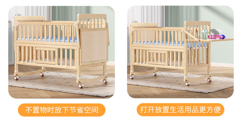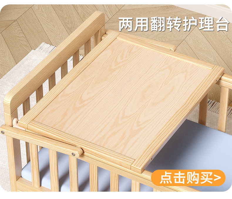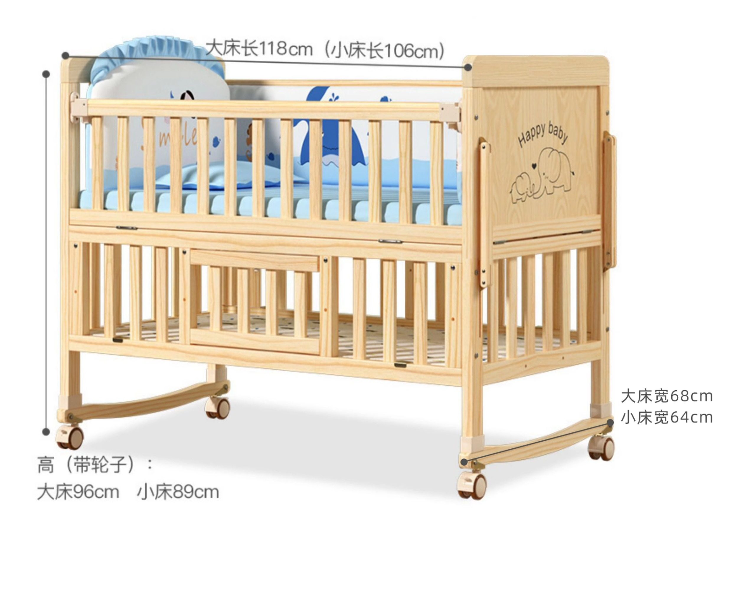Zedbed Crib Spliced with Large Bed Solid Wood Multifunctional Newborn Kidsren's Bed Movable Cradle Baby Bb Bed