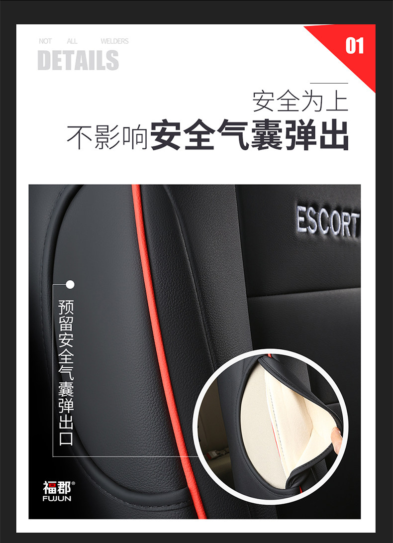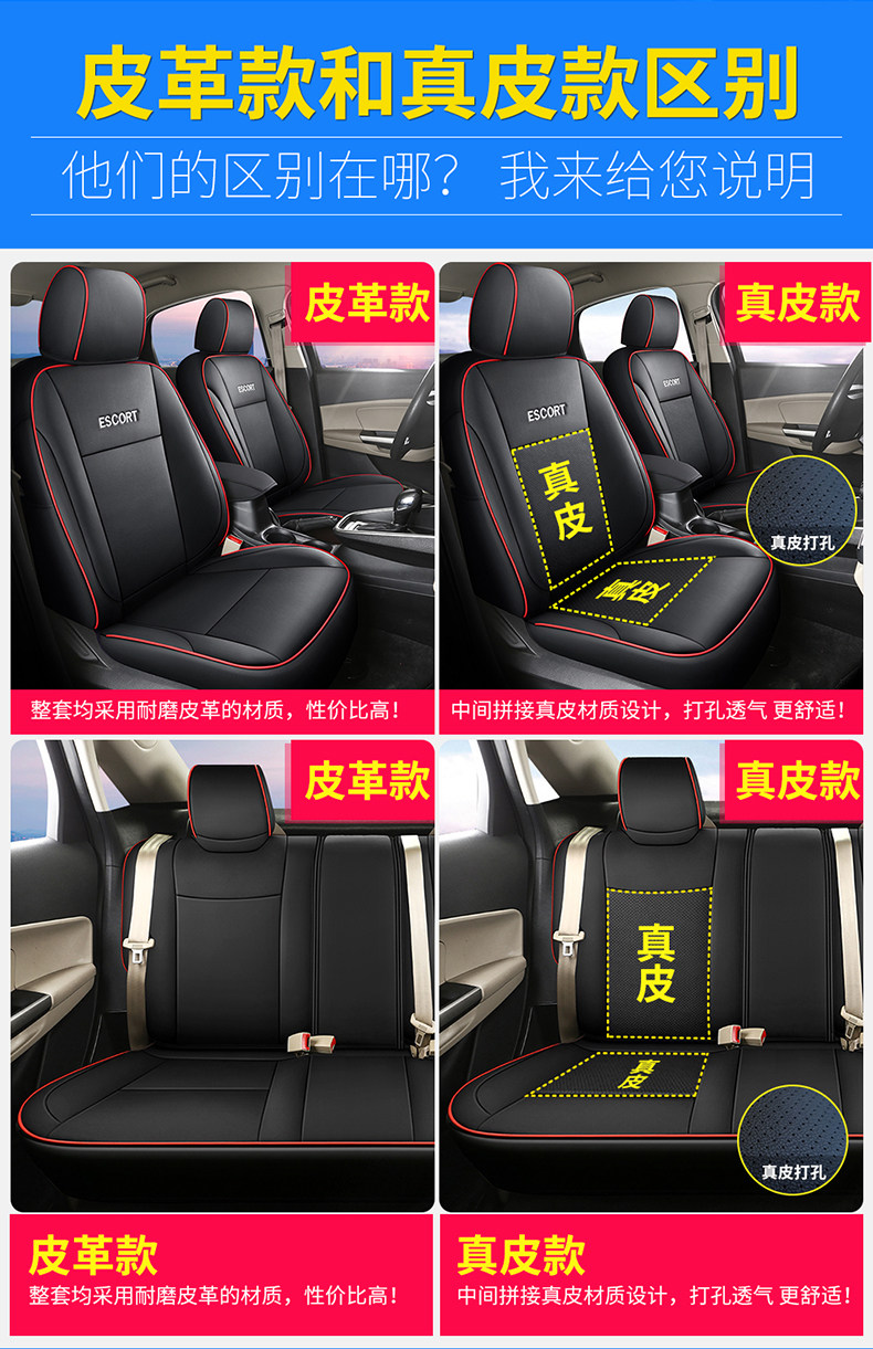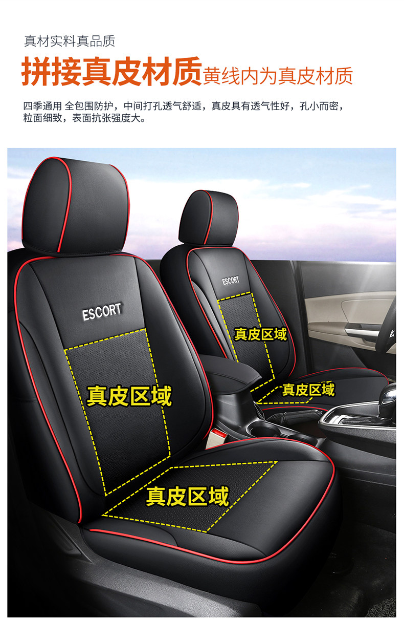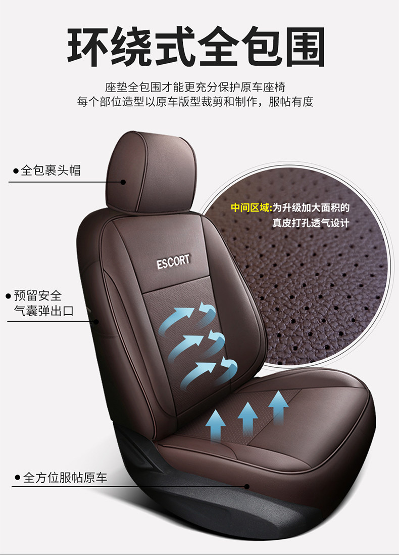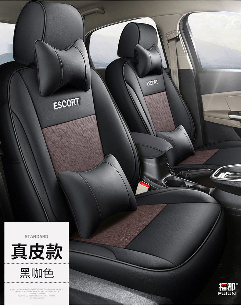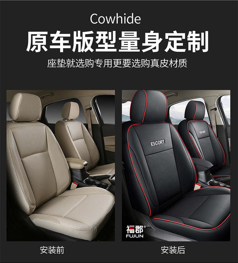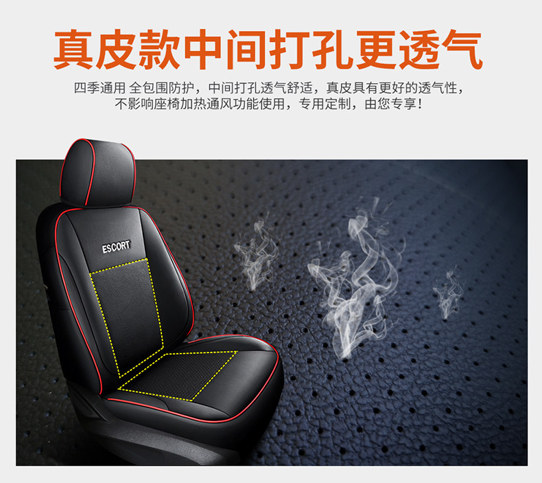 Genuine Leather Ford Escort Special Car Seat Cover, Full Surround Cushion Seat Cover, Suitable for All Seasons, 17892022 Model