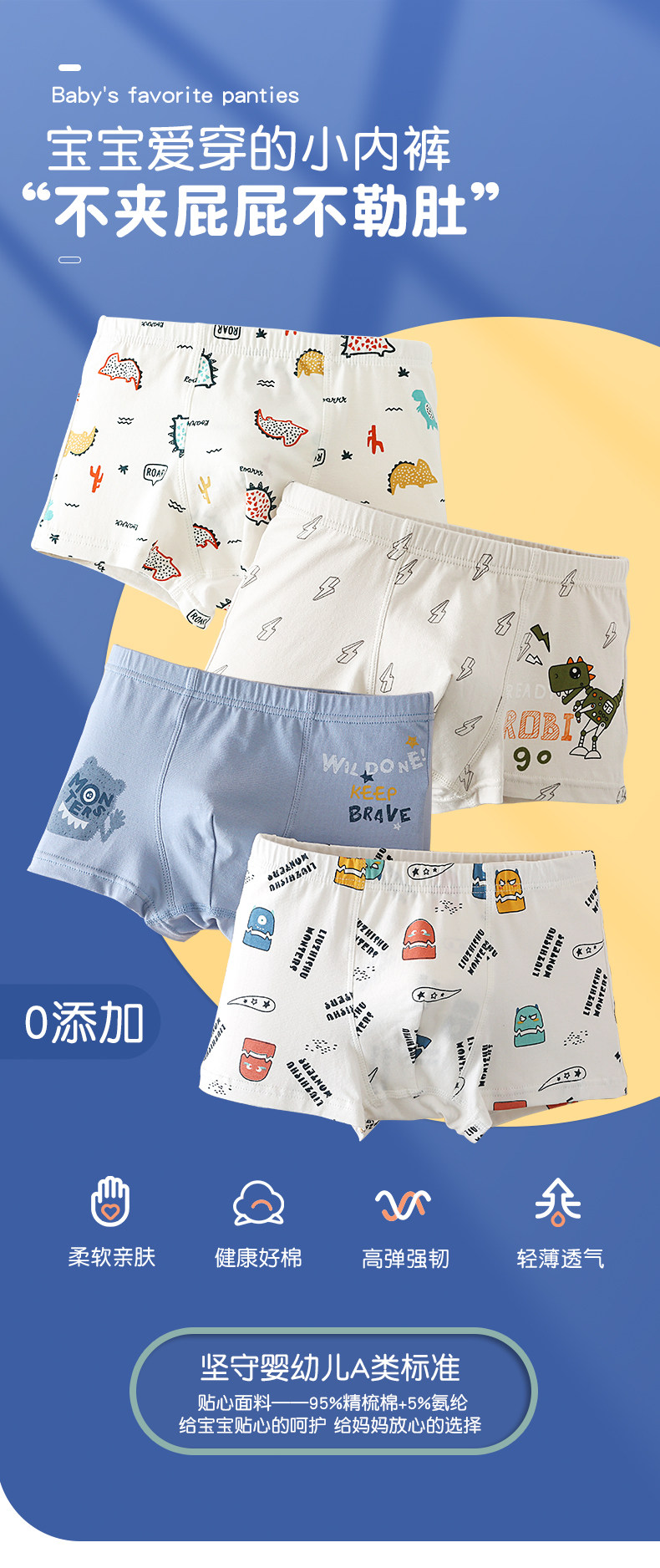 Six-Fingered Mouse Children's Pure Cotton Underwear Summer Boys' Boxer Briefs Baby Boys' Toddler Boys' Medium and Large Children's Thin Shorts