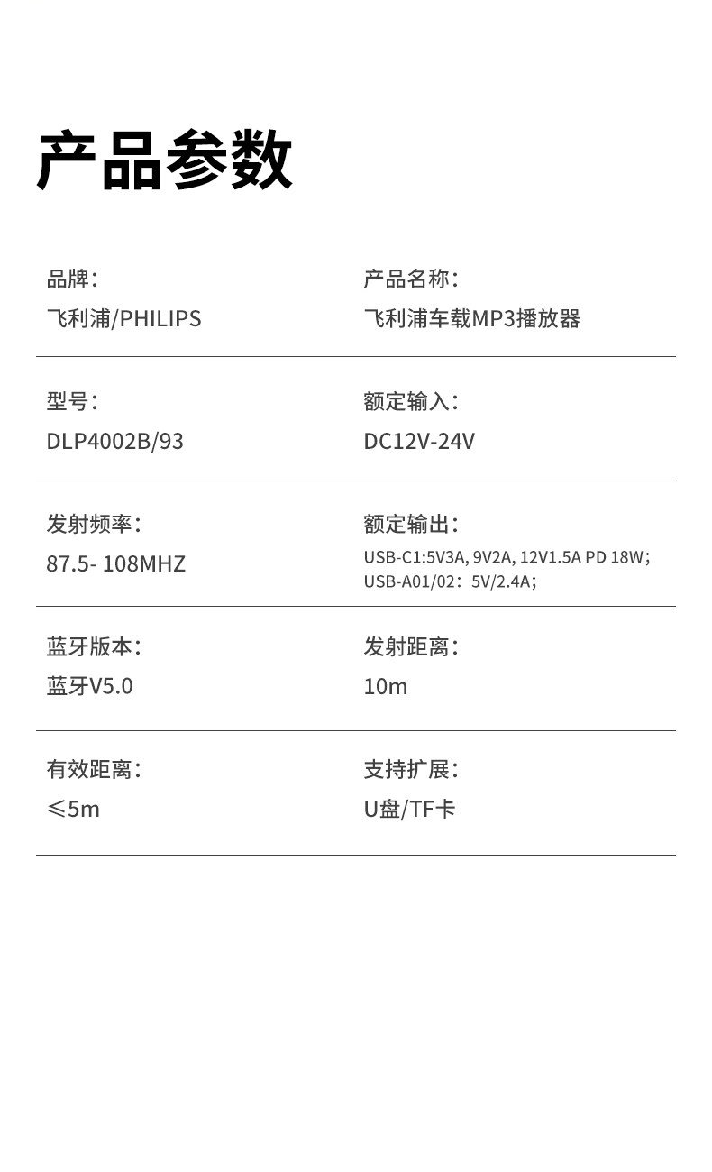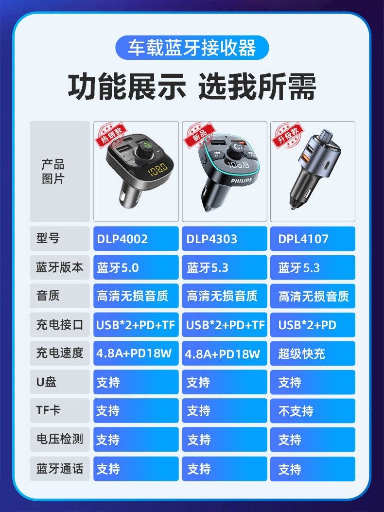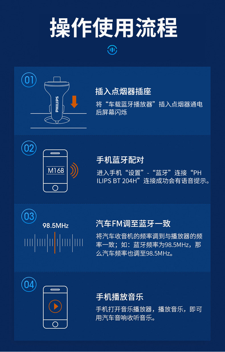 Philips Car Bluetooth Receiver Lossless Sound Quality Mp3 Player Converts Car Cigarette Lighter to Fast Charging