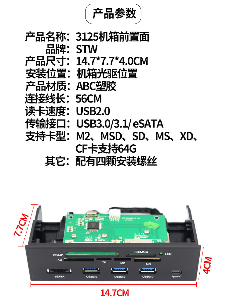 Sanxin Tianwei Stw-3125 Multifunctional Optical Drive Slot Card Reader Desktop Usb3.0 All-In-One Type-C Port