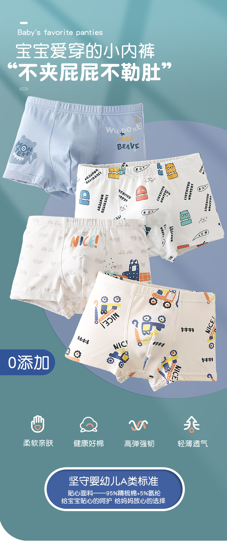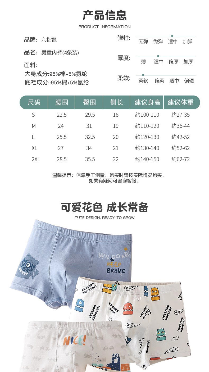 Six-Fingered Mouse Boneless Summer Boys' Pure Cotton Underwear Children's All-Cotton Boxer Briefs Baby Boys' Toddler Four-Corner Shorts