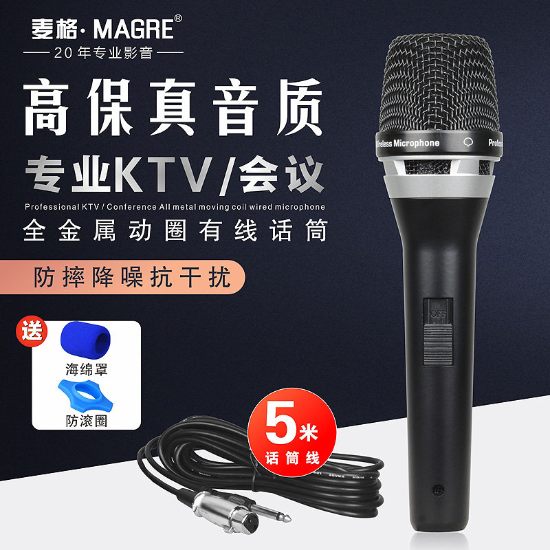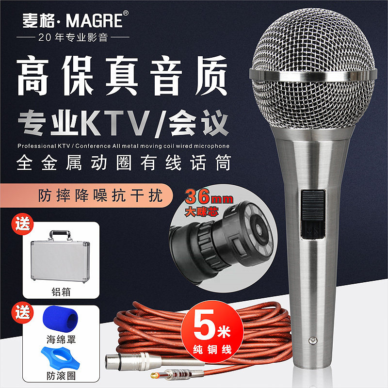 Wired Microphone with Anti-Howling, All-Metal Household Microphone, See Details