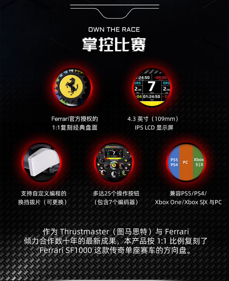 Thrustmaster Ferrari Sf1000 Steering Wheel Faceplate Formula Racing F1 2022 Supports Pc/Ps/Xbox Three Platforms DIY Replacement Faceplate 1:1 Replica Carbon Fiber Panel