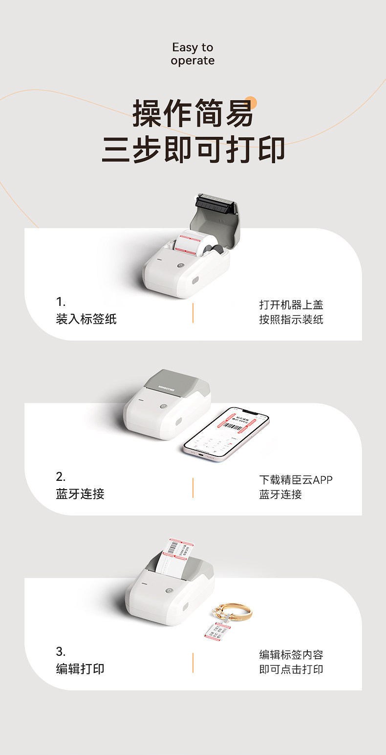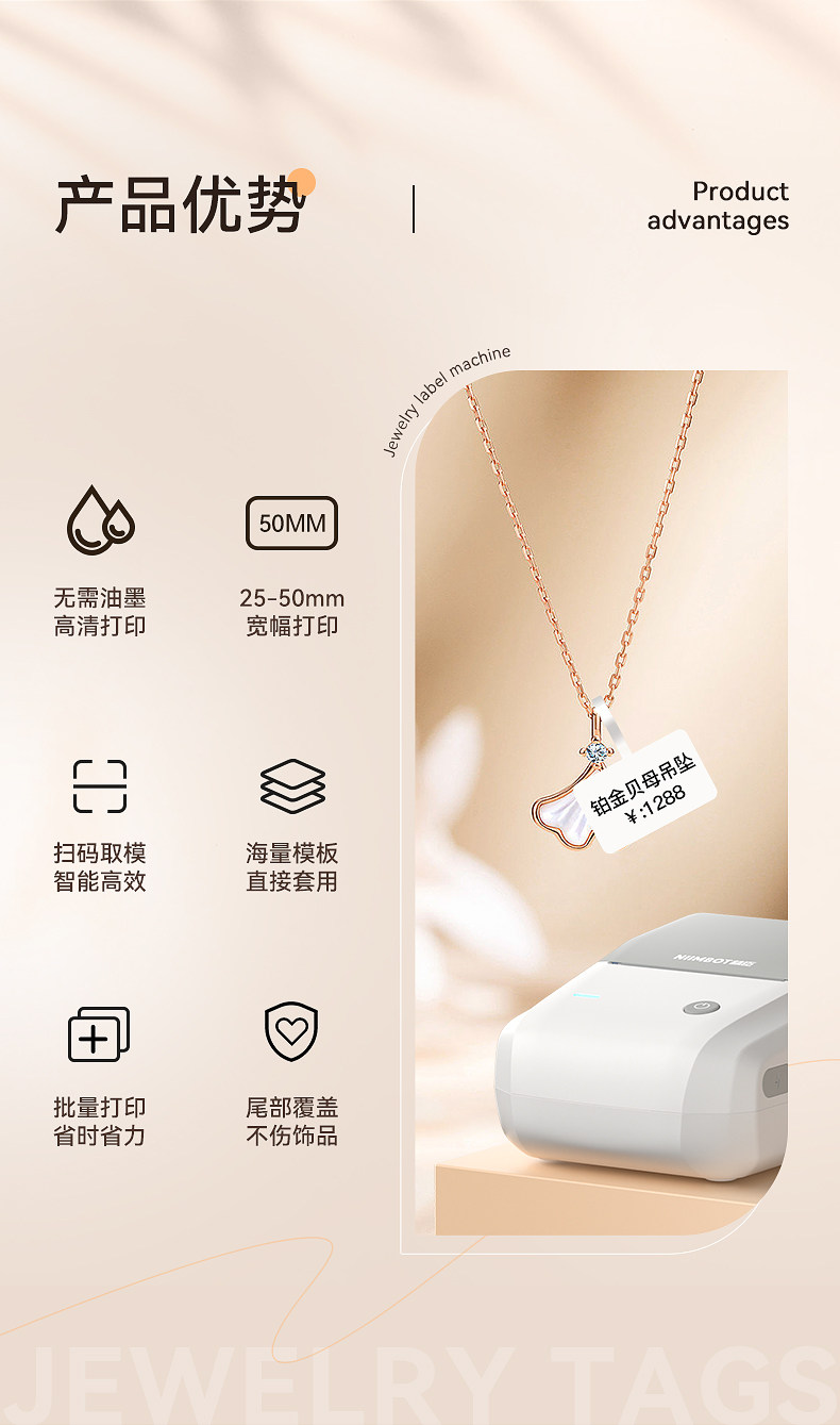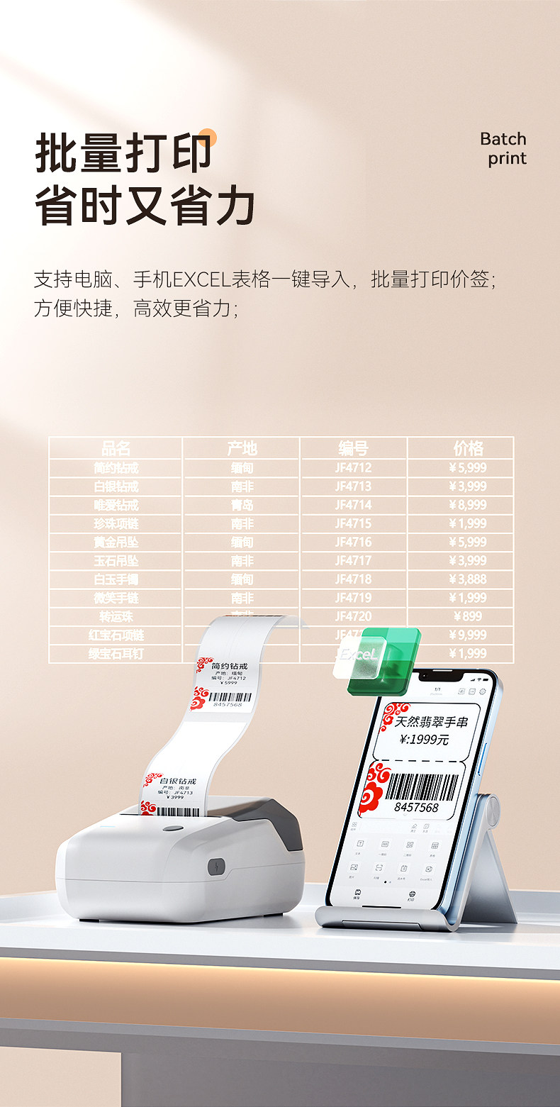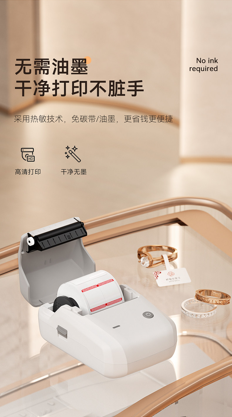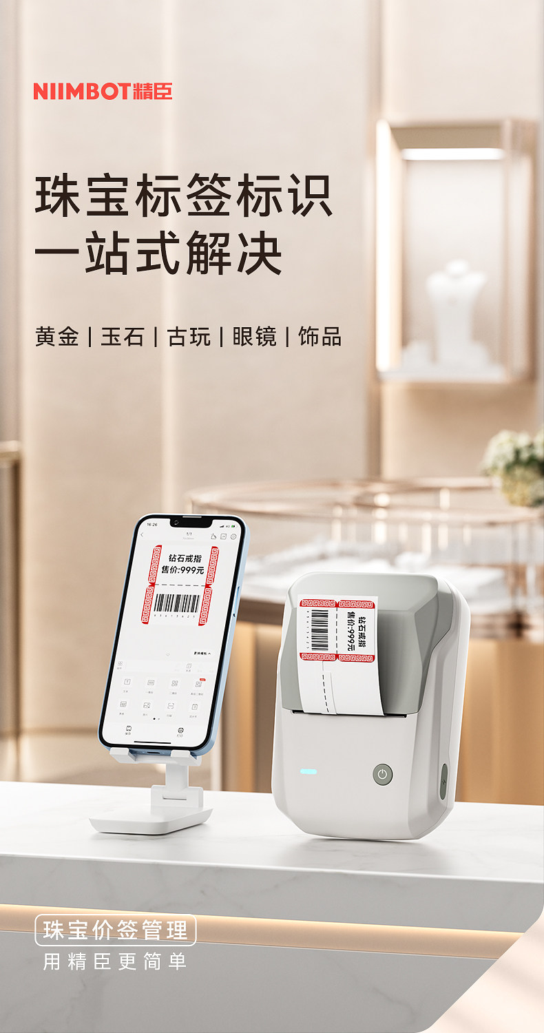 Jingchen B1 Jewelry Label Printer, Jewelry Tag Price Tag Barcode Machine, Handheld Small Printer for Bracelets, Necklaces, Watches, Jade, Jadeite, Eyeglasses, Price Tag Printer