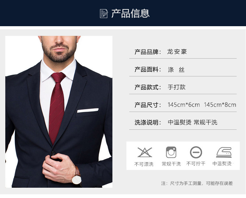 Red Tie for Men, Formal Fashion Burgundy Men's Tie for Wedding, Groom, Light Luxury Korean Style Trendy Suit Hand-Tied