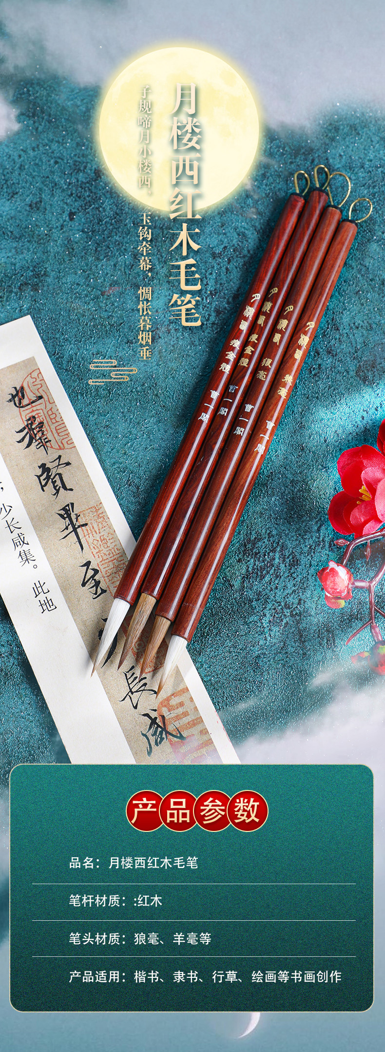 Cao Yige Yuelou Western Medium-Capital Script Brush Pen Set, Professional Grade for Calligraphy, Suitable for Practicing Regular Script, Slim Gold Script, European Script, Yan Script, Li Script, Regular Script, Chinese Painting, Cursive Script, Special Pen for Students Practicing Calligraphy