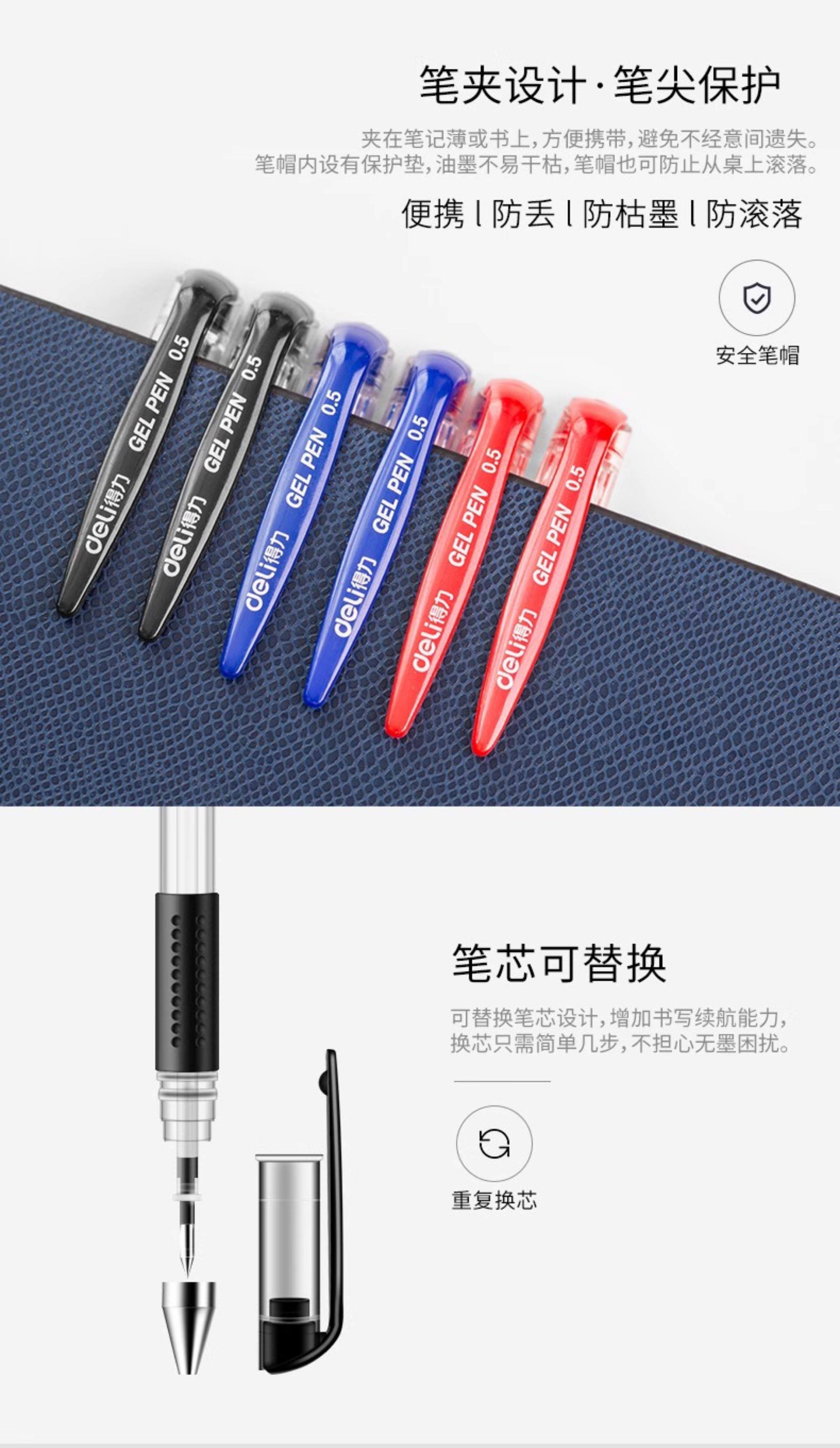 60 Deli Gel Pens, Black 0.5mm Ballpoint Pens, Student Water-Based Pen Refills, Red Pens, Black Pens, Exam Pens, Training and Conference Stationery, Office Supplies, Carbon Pens, Signature Pens
