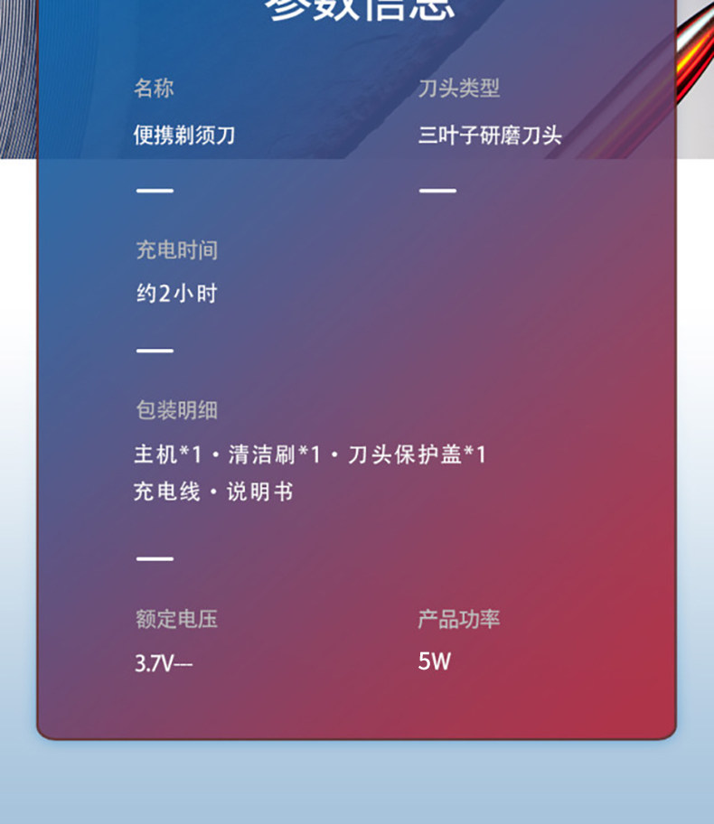 | Accessory Type | Blade,Charging Cable,Cleaning Brush,Storage Bag |