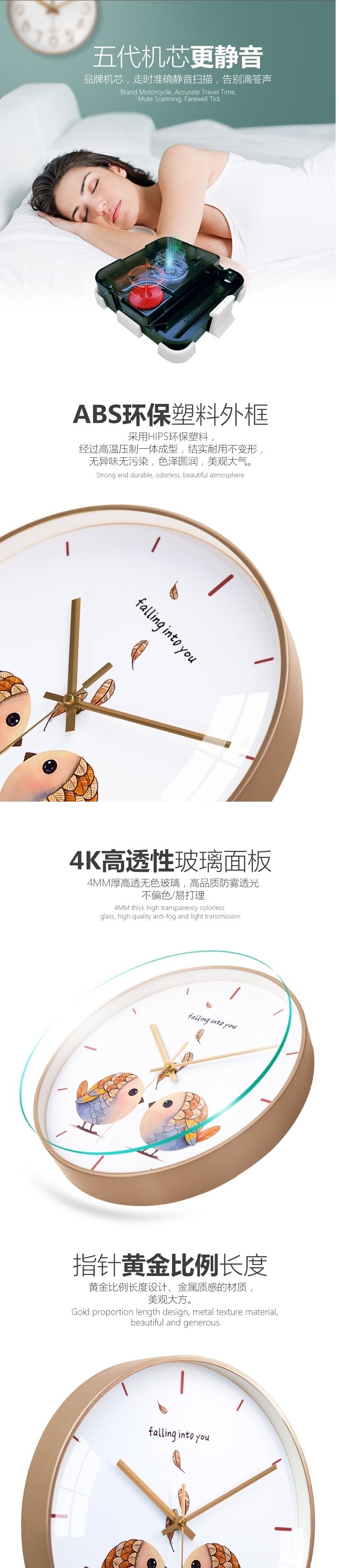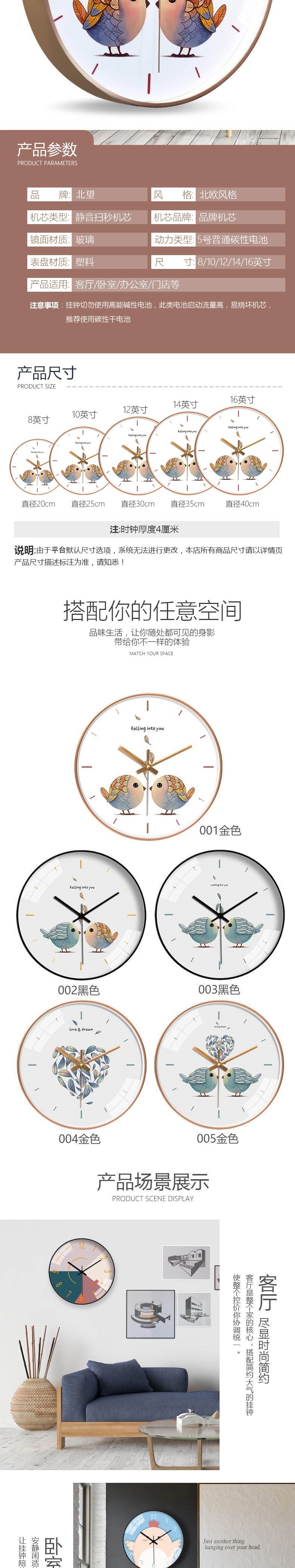 Cartoon Kissing Bird Art Wall Clock for Living Room, Home Use, Creative Simple Clock, Living Room Decoration, Quartz Clock, Silent