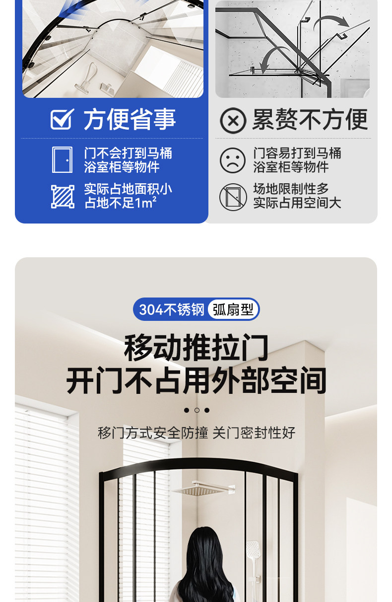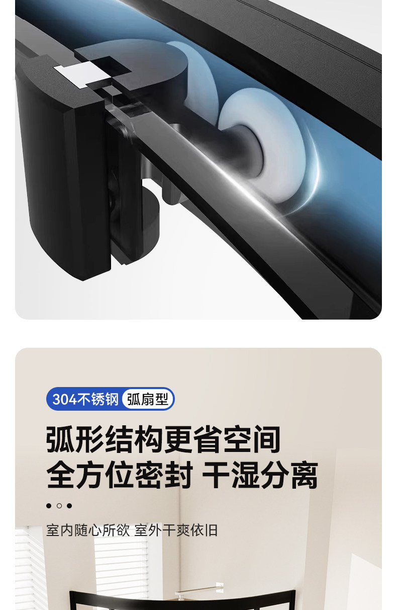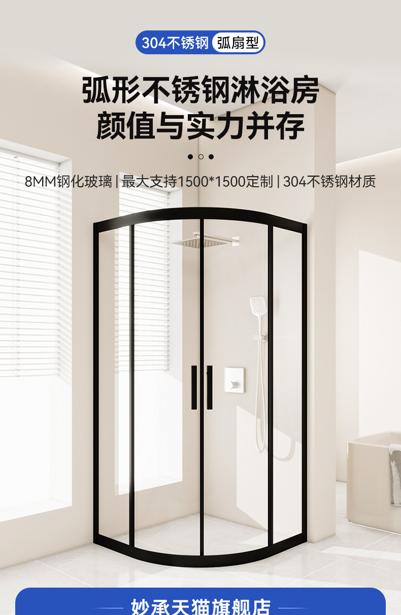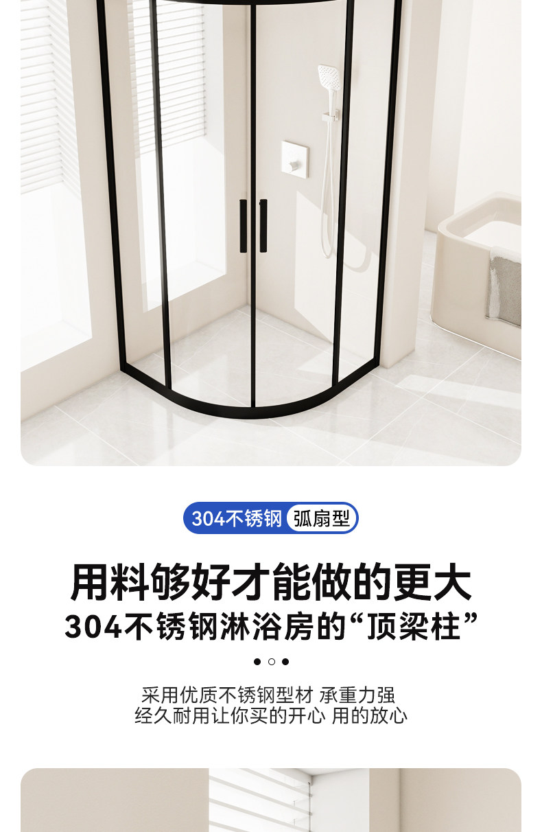 Shower Room Glass Partition Dry and Wet Separation Bathroom Home Integrated Arc-Shaped Shower Room Stainless Steel Partition