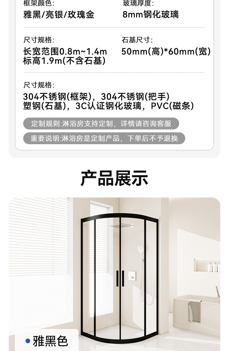 | Color Classification | Add 100 Yuan to Personalize Gun Gray/Milk White,6mm Tempered/Mirror Silver 900*900,8mm Tempered Glass/Mirror Silver 900*900,8mm Tempered Glass/Mirror Silver 1000*1000,8mm Tempered Glass/Mirror Silver 1100*1100,8mm Tempered Glass/Mirror Silver 1200*1200,8mm Tempered Glass/Mirror Silver 800*1000,8mm Tempered Glass/Mirror Silver 900*1000,8mm Tempered Glass/Mirror Silver 900*1100,8mm Tempered Glass/Mirror Silver 900*1200,8mm Tempered Glass/Mirror Silver 1000*1100,8mm Tempered Glass/Mirror Silver 1000*1200,8mm Tempered Glass/Mirror Silver 1100*1200,8mm Tempered Glass/Athens Black 900*900,8mm Tempered Glass/Athens Black 1000*1000,8mm Tempered Glass/Athens Black 1100*1100,8mm Tempered Glass/Athens Black 1200*1200,8mm Tempered Glass/Athens Black 800*1000,8mm Tempered Glass/Athens Black 900*1000,8mm Tempered Glass/Athens Black 900*1100,8mm Tempered Glass/Athens Black 900*1200,8mm Tempered Glass/Athens Black 1000*1100,8mm Tempered Glass/Athens Black 1000*1200,8mm Tempered Glass/Athens Black 1100*1200,1,2 |