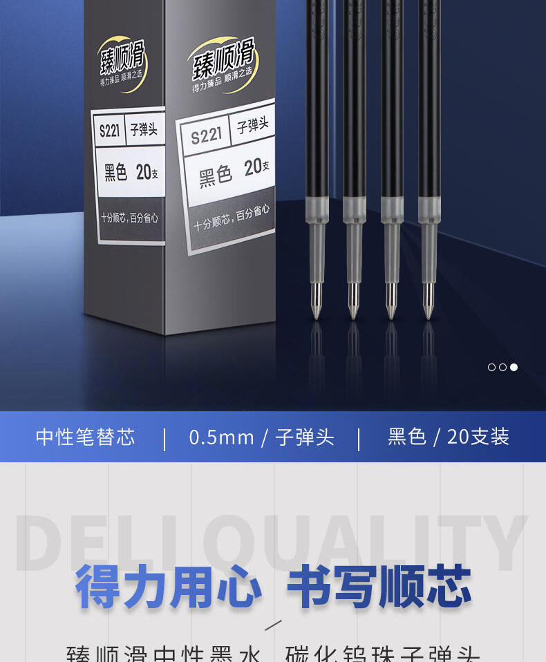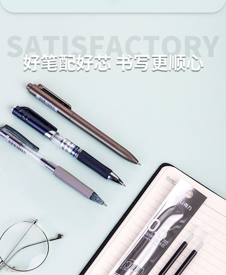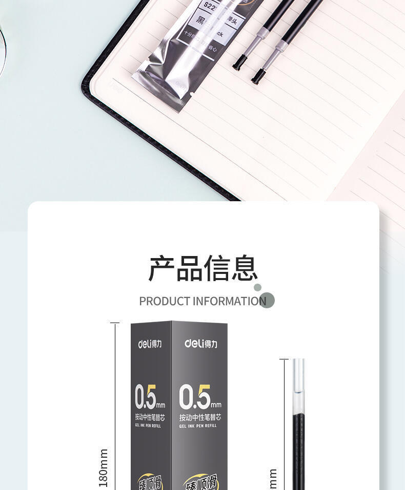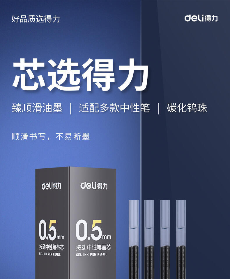 Deli Retractable Gel Pen Refill Bullet Tip Business Signature 0.5 Ultra-Smooth Red Blue Black Ink Press Pen Refill