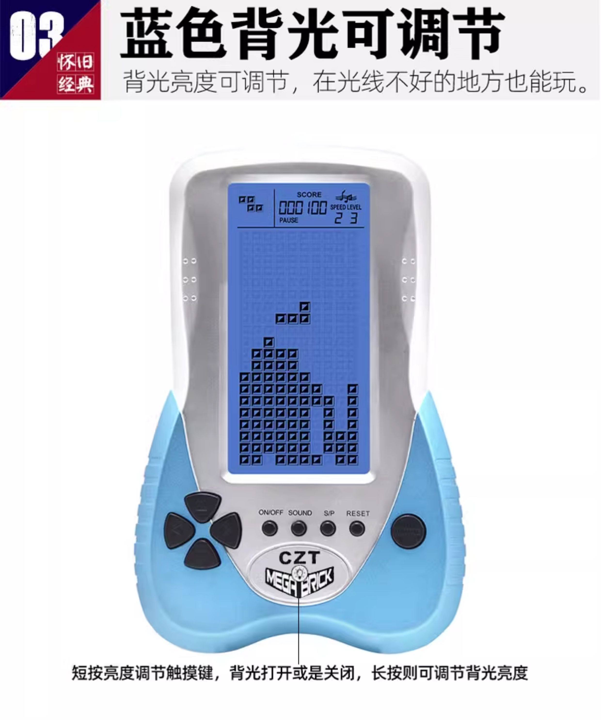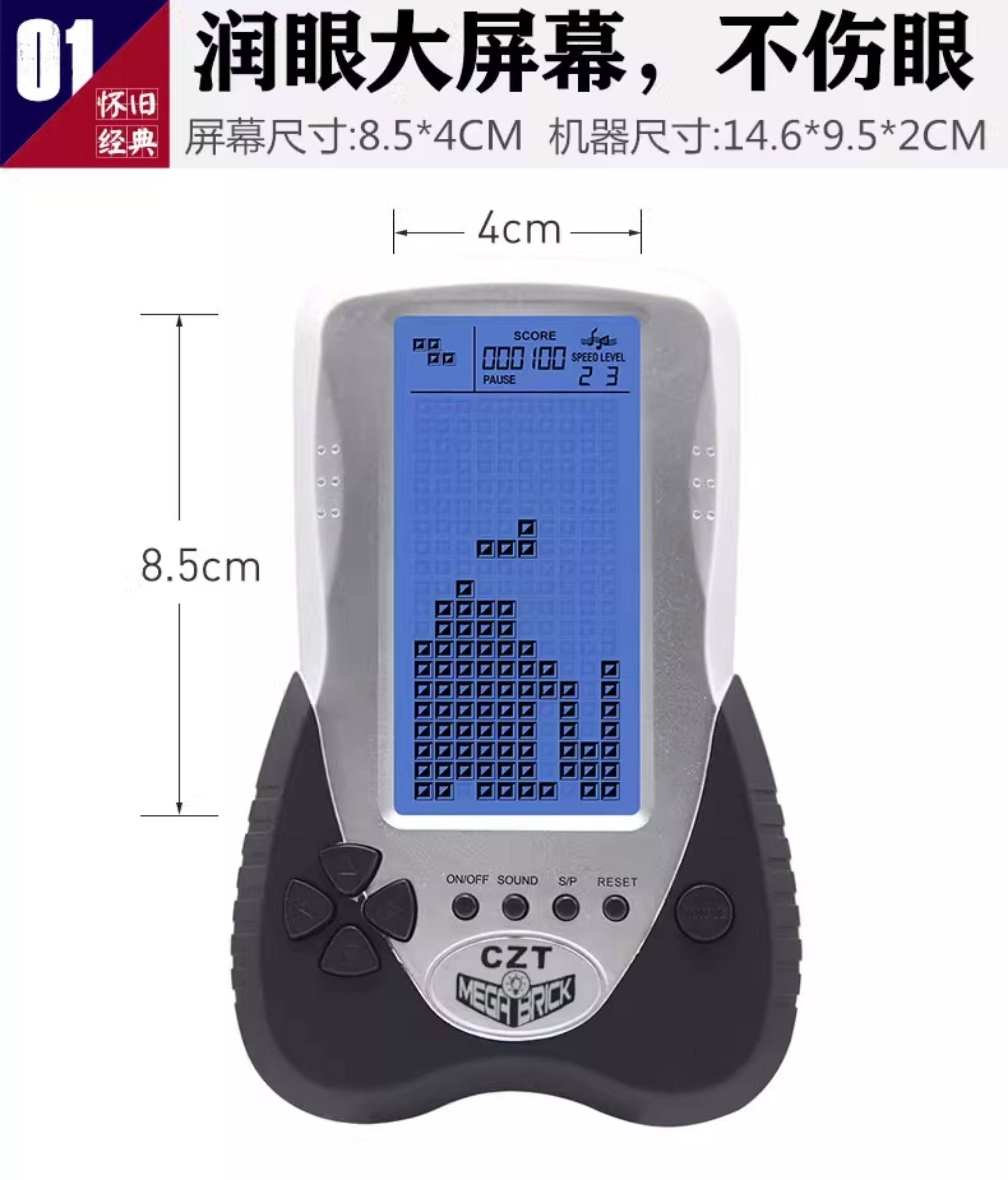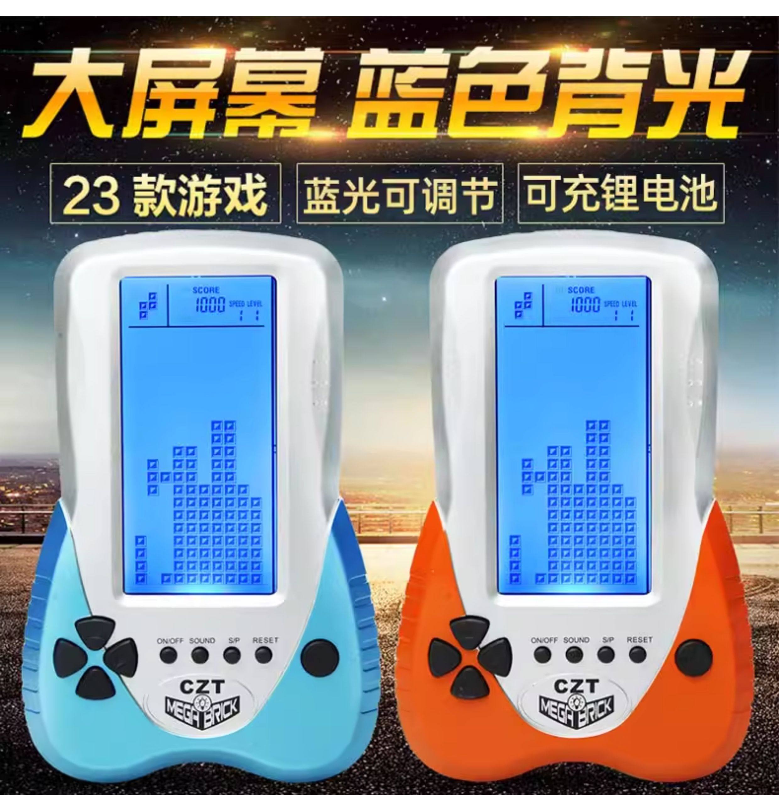 4.1inch Large-Screen High-End Blue Light-Emitting Handheld Tetris Game Console with Headphone Jack and Charging Function, Nostalgic Classic Retro Old-Fashioned Educational Toy Gift for the Elderly and Children, Handheld Tetris Game Console