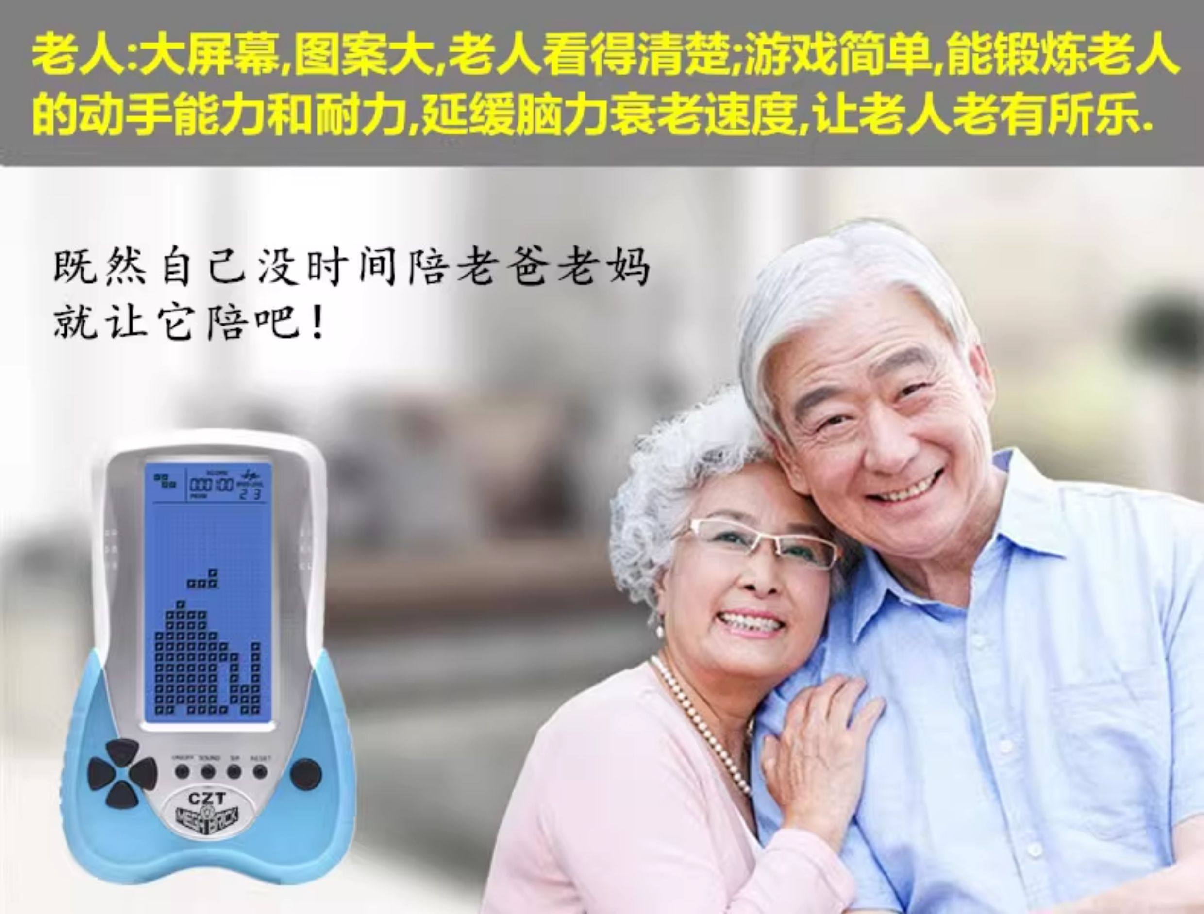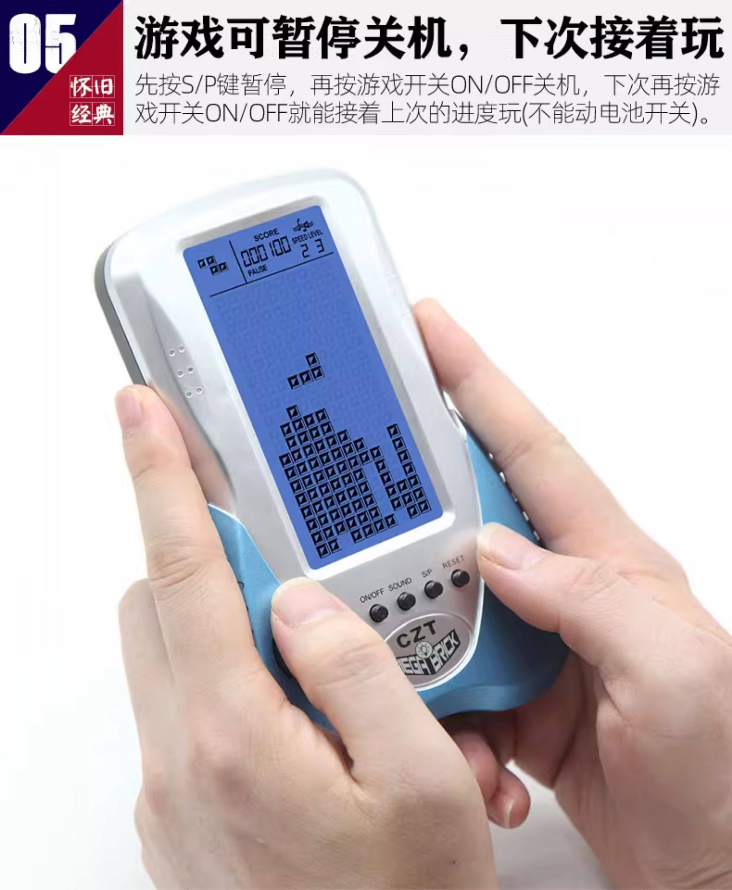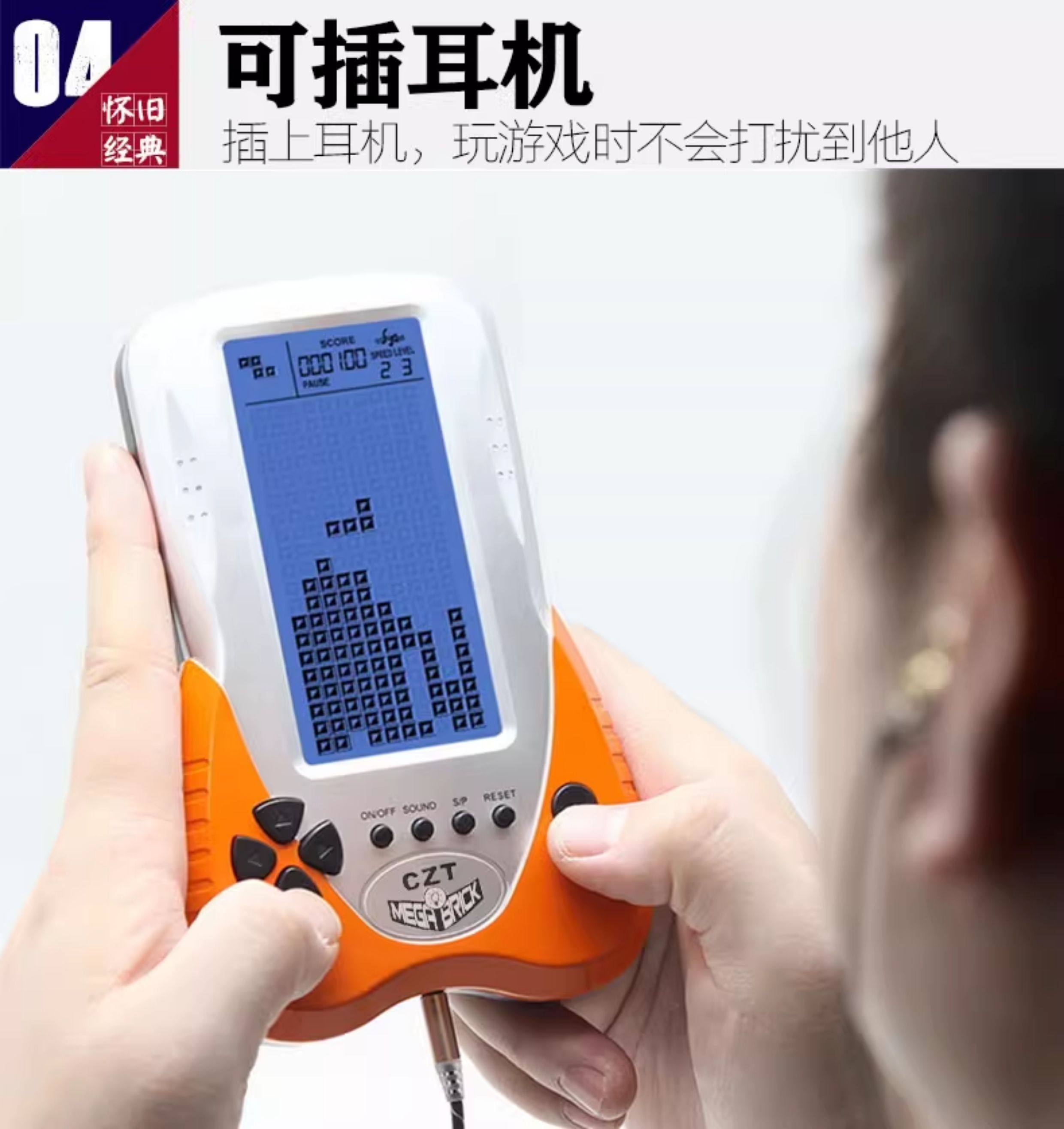4.1inch Large-Screen High-End Blue Light-Emitting Handheld Tetris Game Console with Headphone Jack and Charging Function, Nostalgic Classic Retro Old-Fashioned Educational Toy Gift for the Elderly and Children, Handheld Tetris Game Console