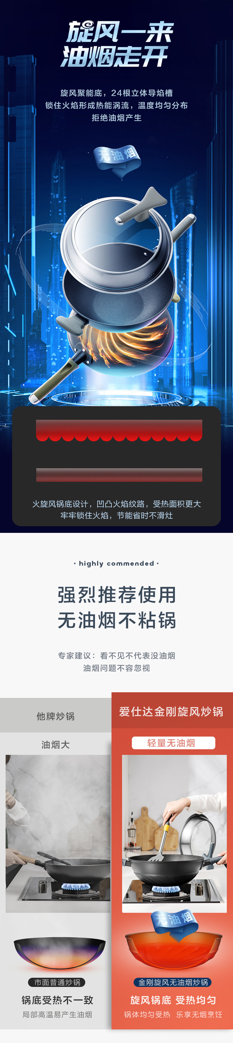 Aistar Diamond Cyclone Frying Pan, No Oil Smoke, Non-Stick Pan for Home Use, Gas Stove Special, Flat-Bottomed Cooking Pan