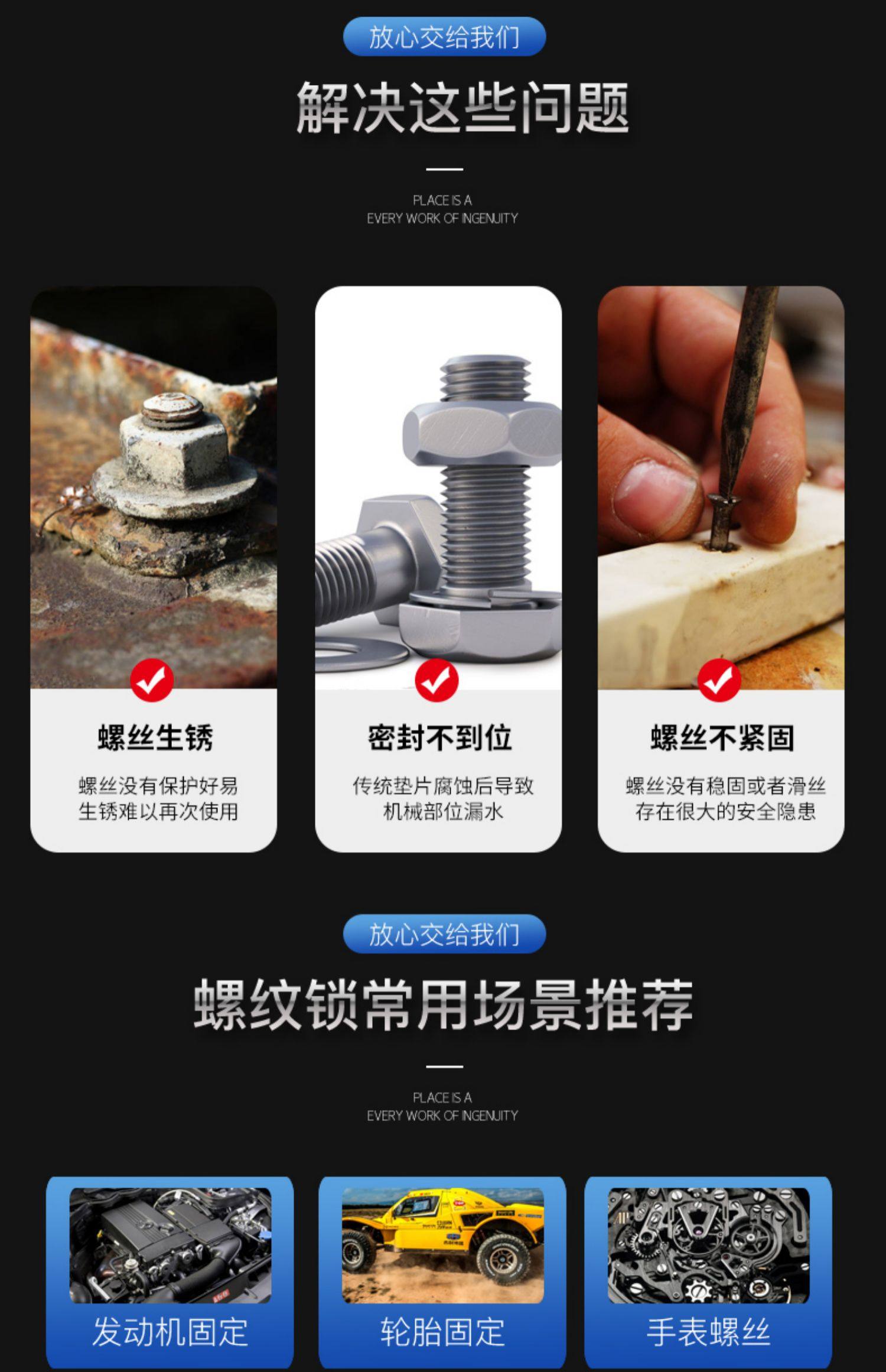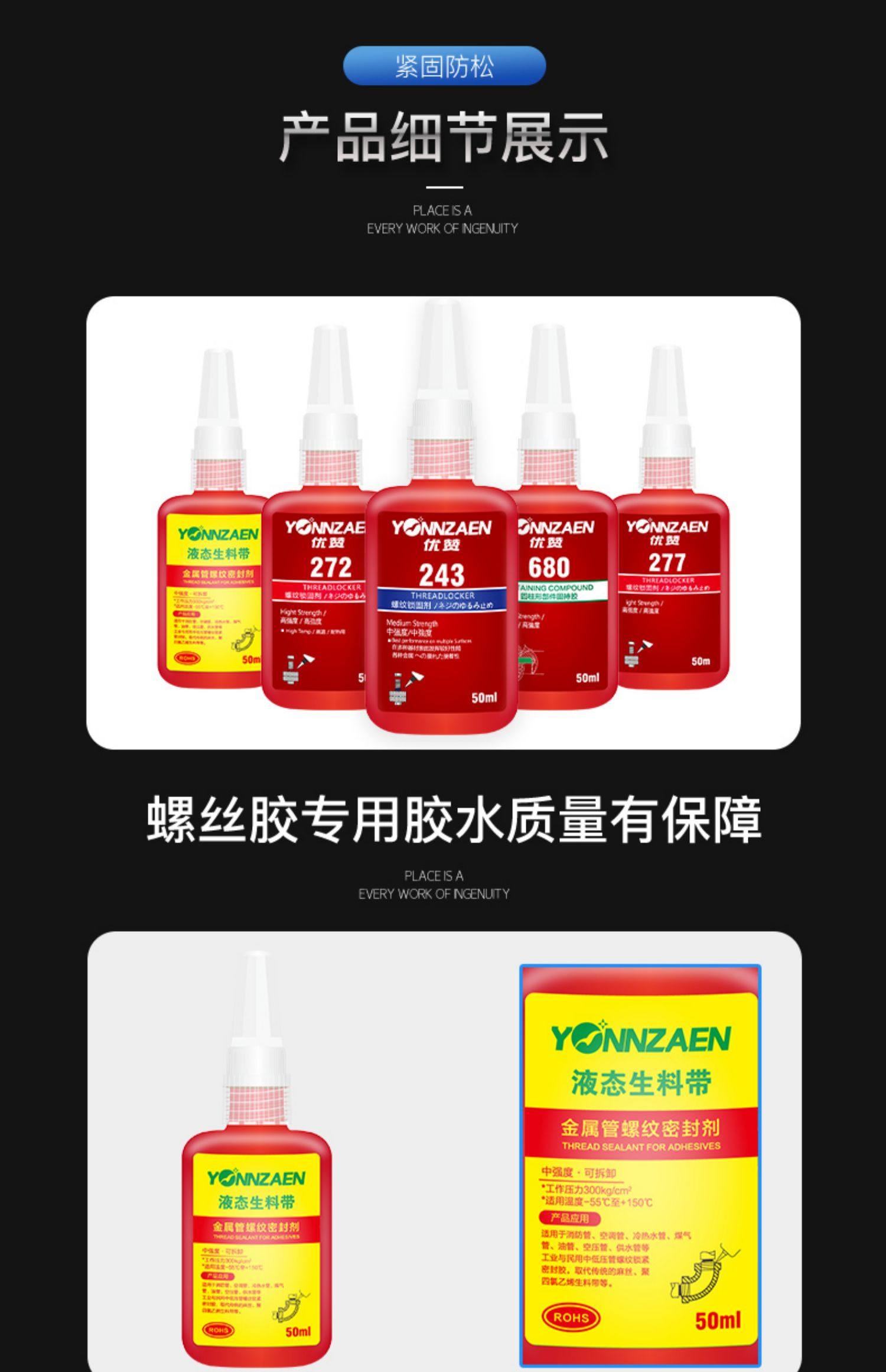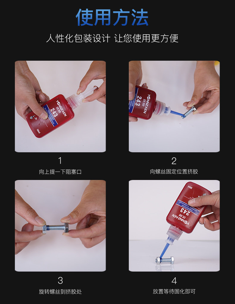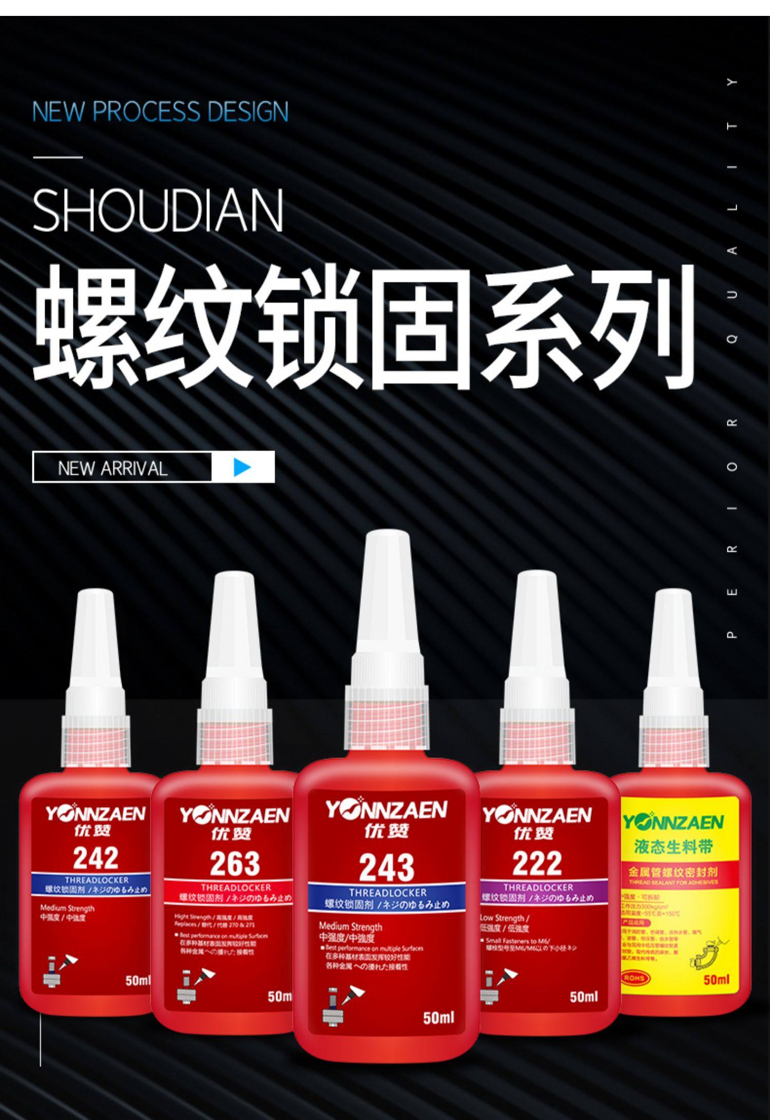 243 Screw Fastening Anti-Loosening Anaerobic Sealant 263/242/262/271/290 Removable Metal Thread Glue Locking Agent Anti-Slip High-Strength High-Temperature Resistant Liquid Threadlocker
